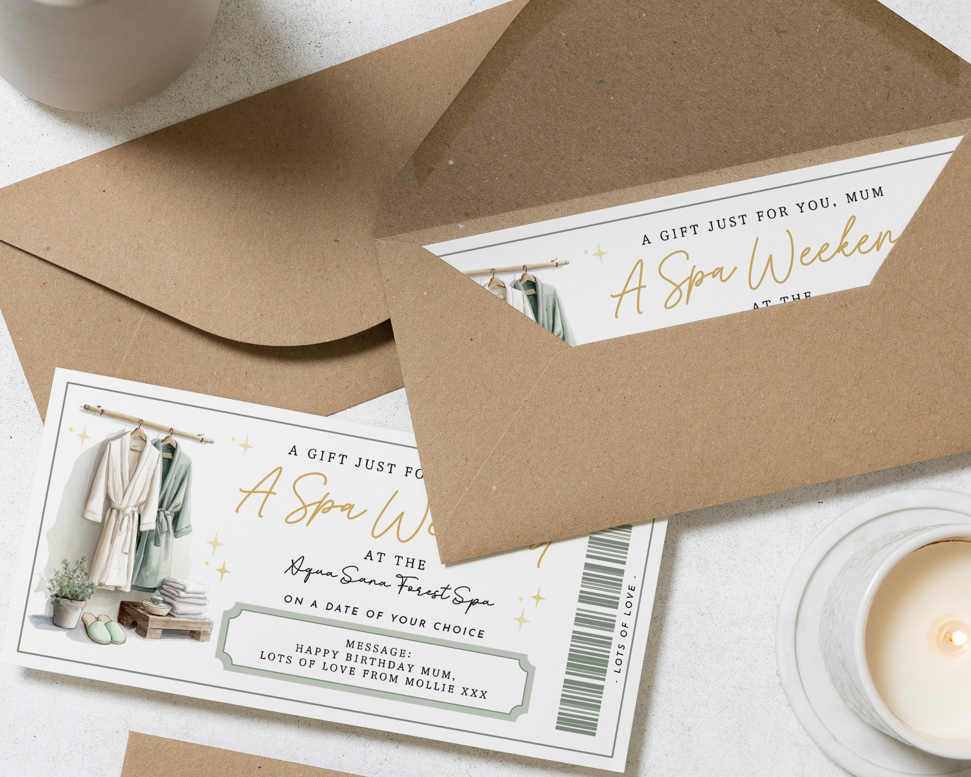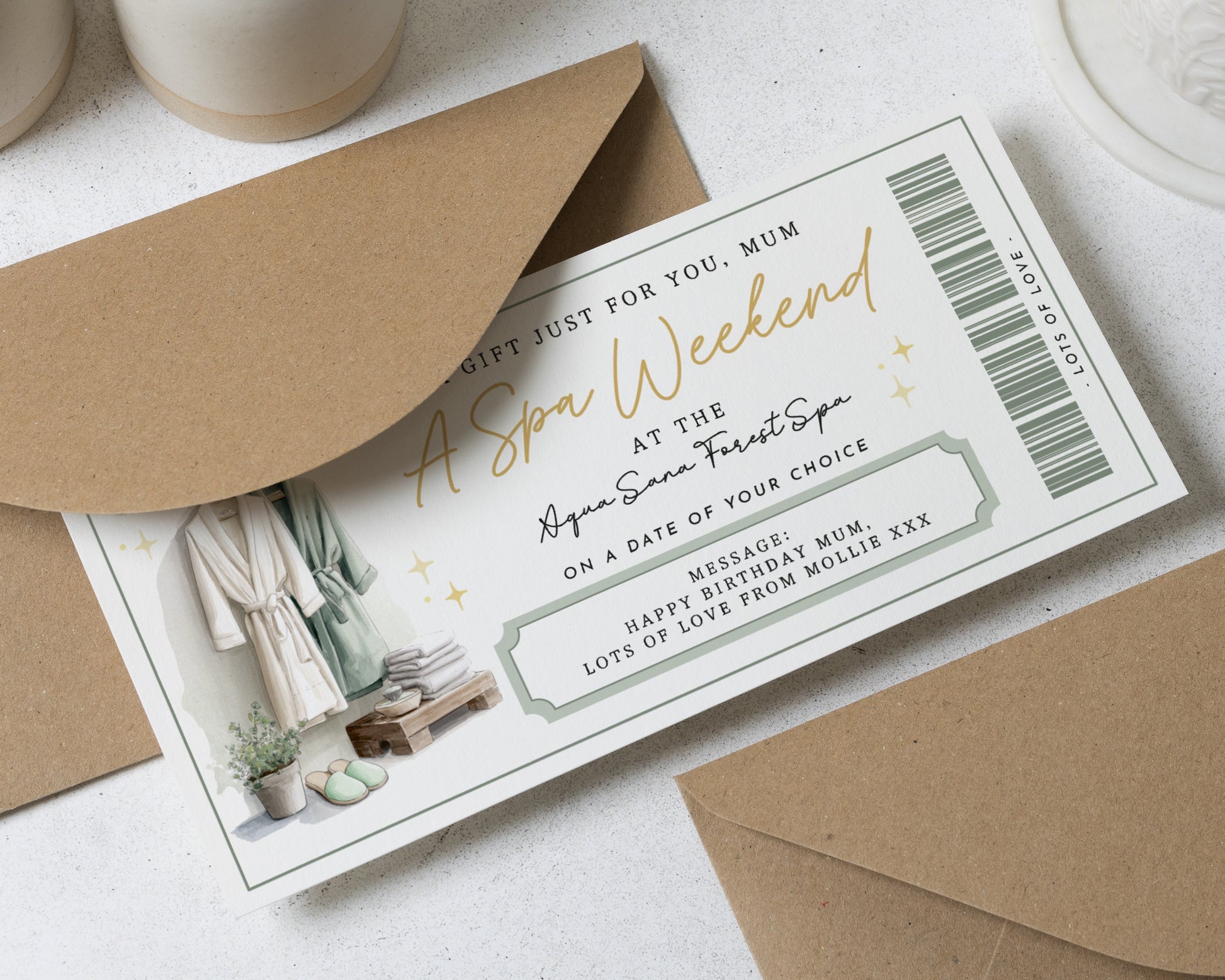 • Every voucher comes complete with a recycled Kraft envelope, ready to gift.