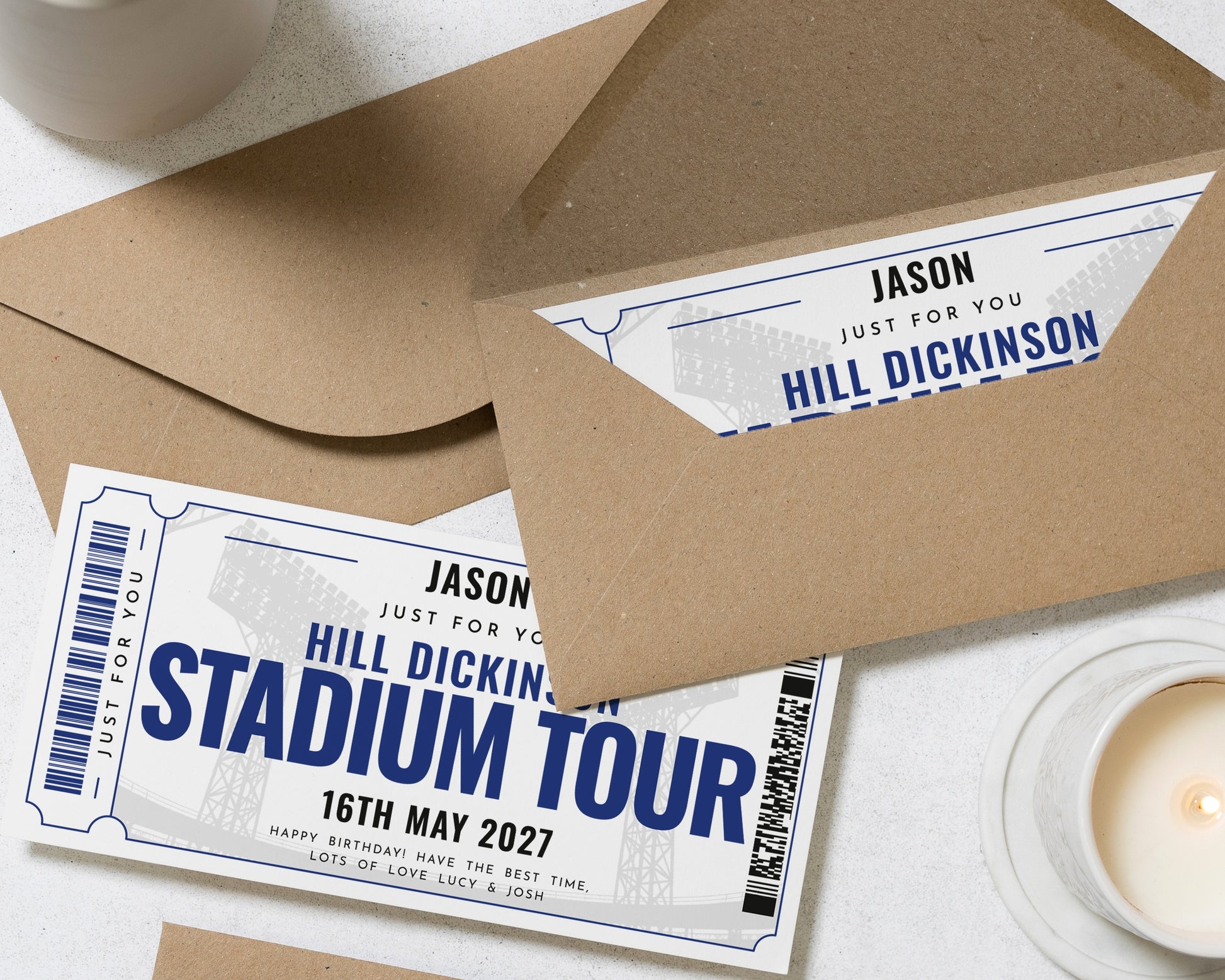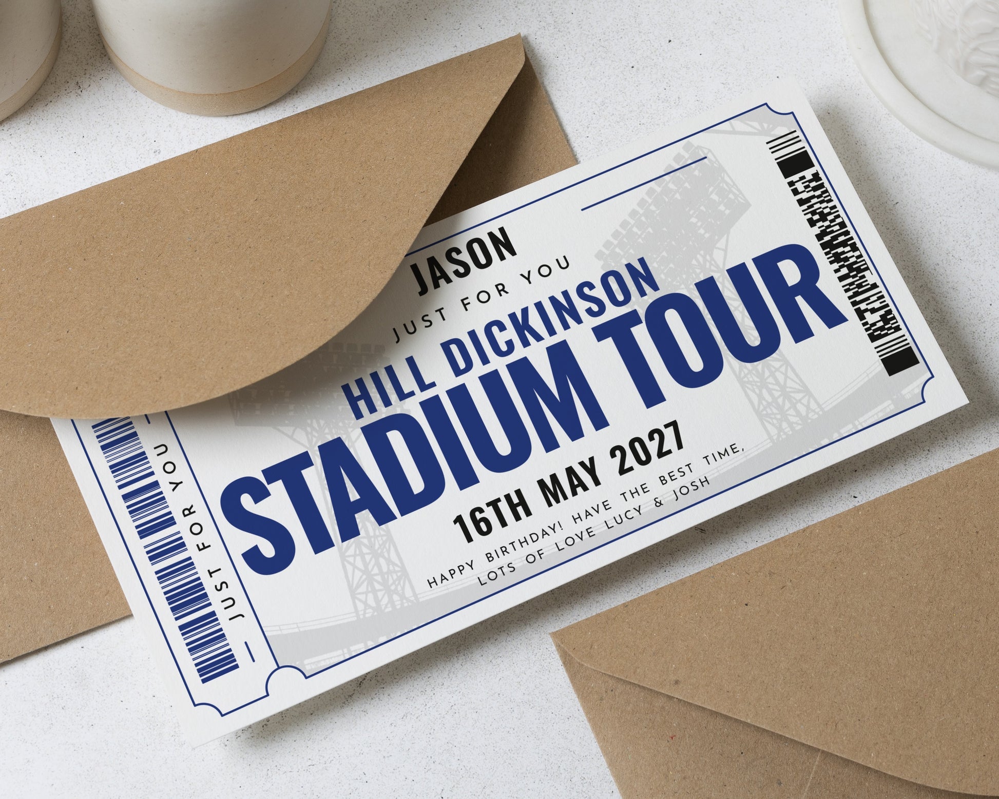 Surprise someone special with a personalised stadium tour gift voucher. This custom ticket is perfect for birthdays or unique experience gifts for him or a friend.
