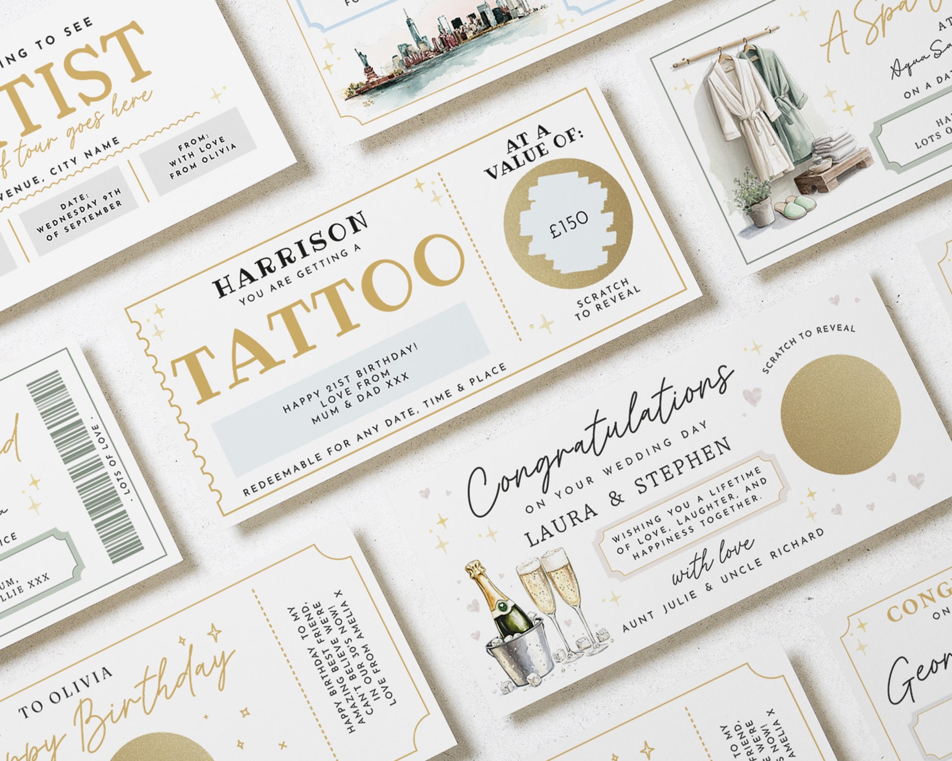 • Each voucher card measures 210x99mm, and is printed on heavyweight premium cardstock.