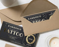 • Each voucher card measures 210x99mm, and is printed on heavyweight premium cardstock and finished with real gold foil detailing for a luxurious touch.