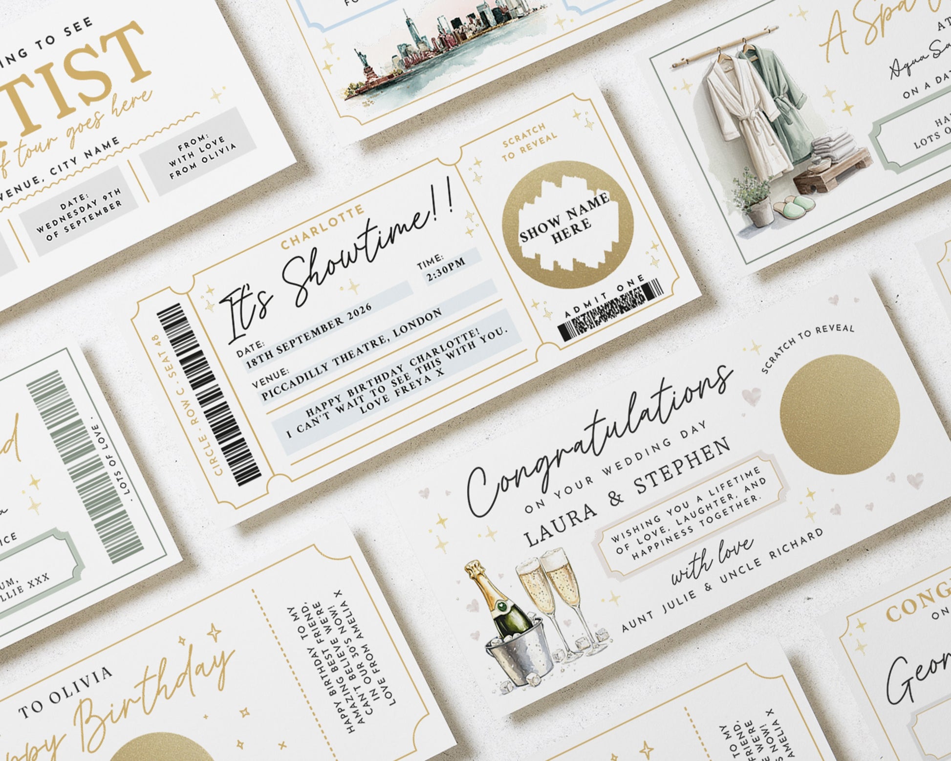 • Each voucher card measures 210x99mm, and is printed on heavyweight premium cardstock.