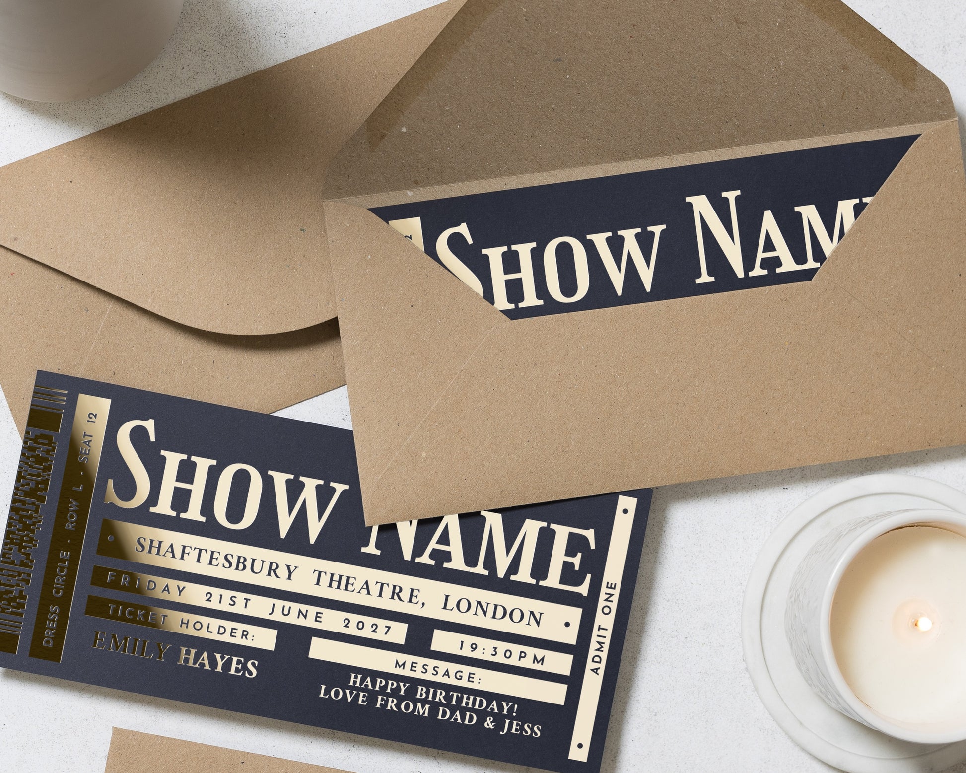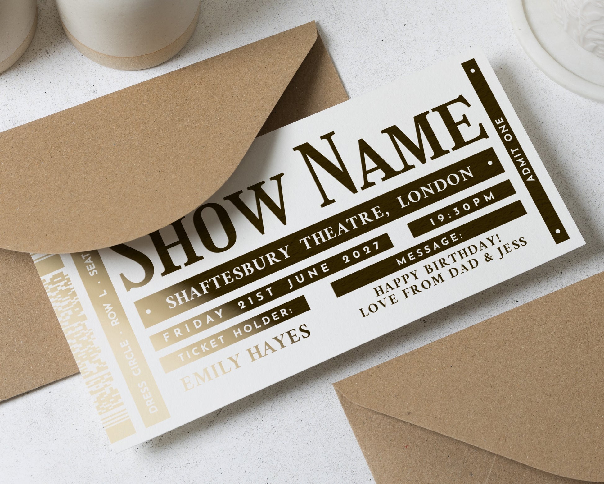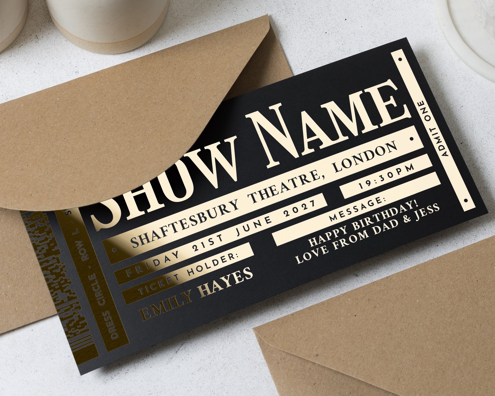 Personalised Theatre Ticket Gift, Gold Foil Show Voucher, Custom Birthday Gift, London Theatre Experience
