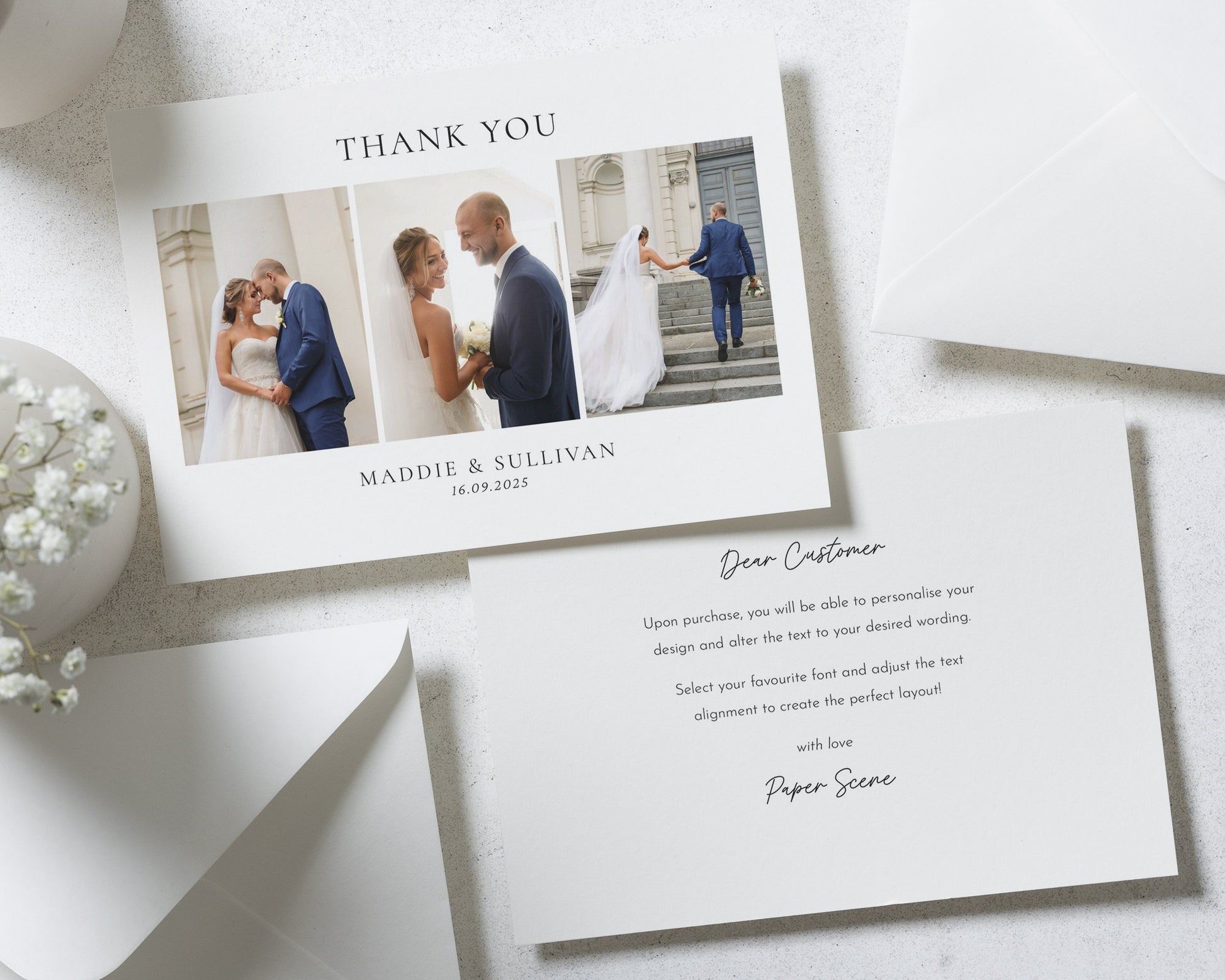 Our wedding thank you cards are fully personalised – featuring your chosen photo (or photos!) and wording to match your style. Whether you prefer something modern and minimal or a design with a touch of elegance, we’ll help you create a card that feels uniquely you.