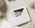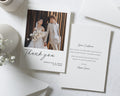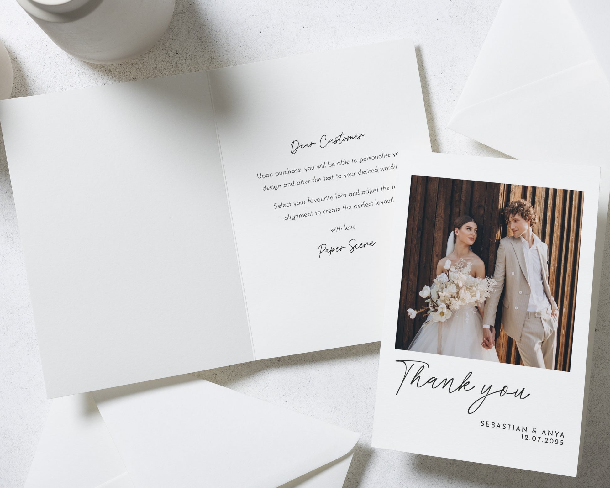 A modern, minimalist folded wedding thank you card featuring your favourite photo and personalised names and date. Perfect for sharing your gratitude in style.
