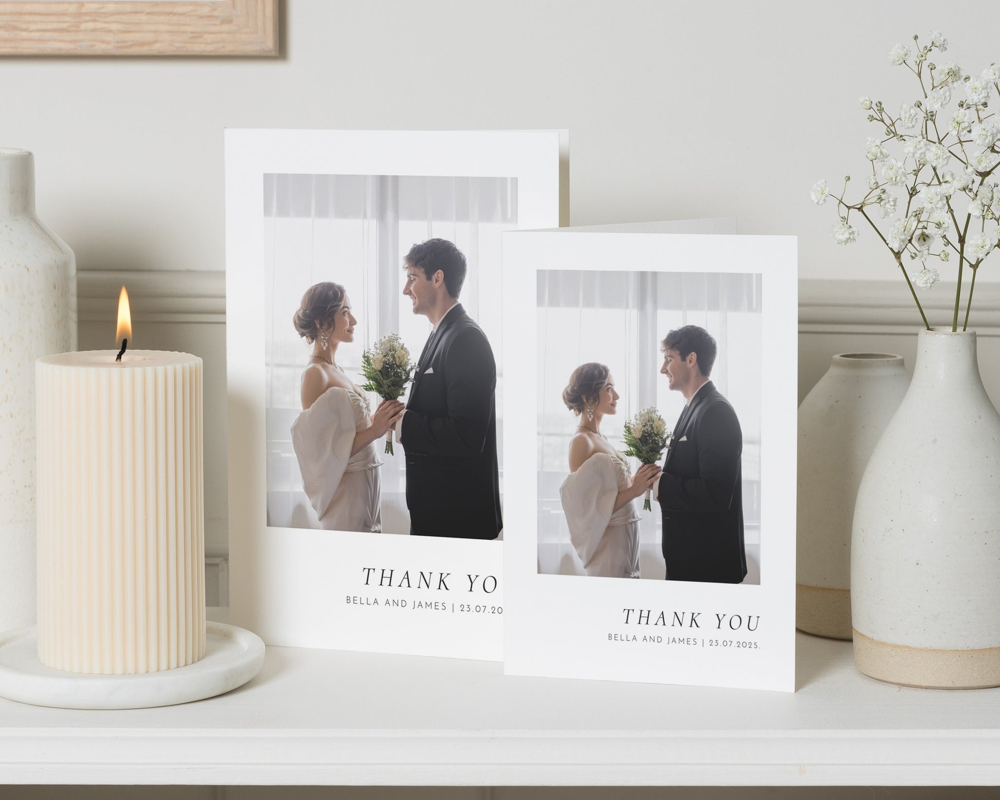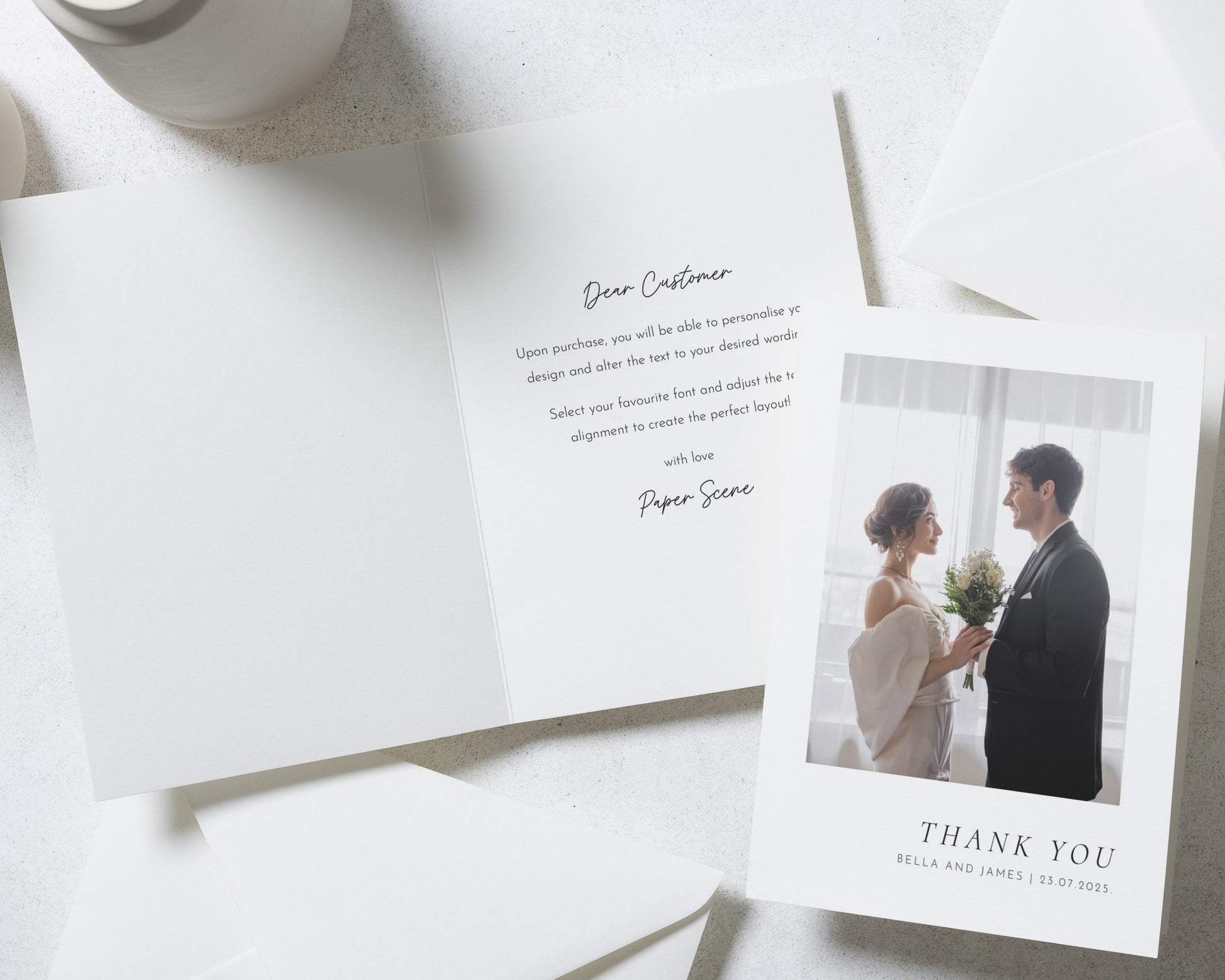 This elegant personalised wedding thank you card features your favourite photo and a minimalist design, perfect for sharing your gratitude in style.