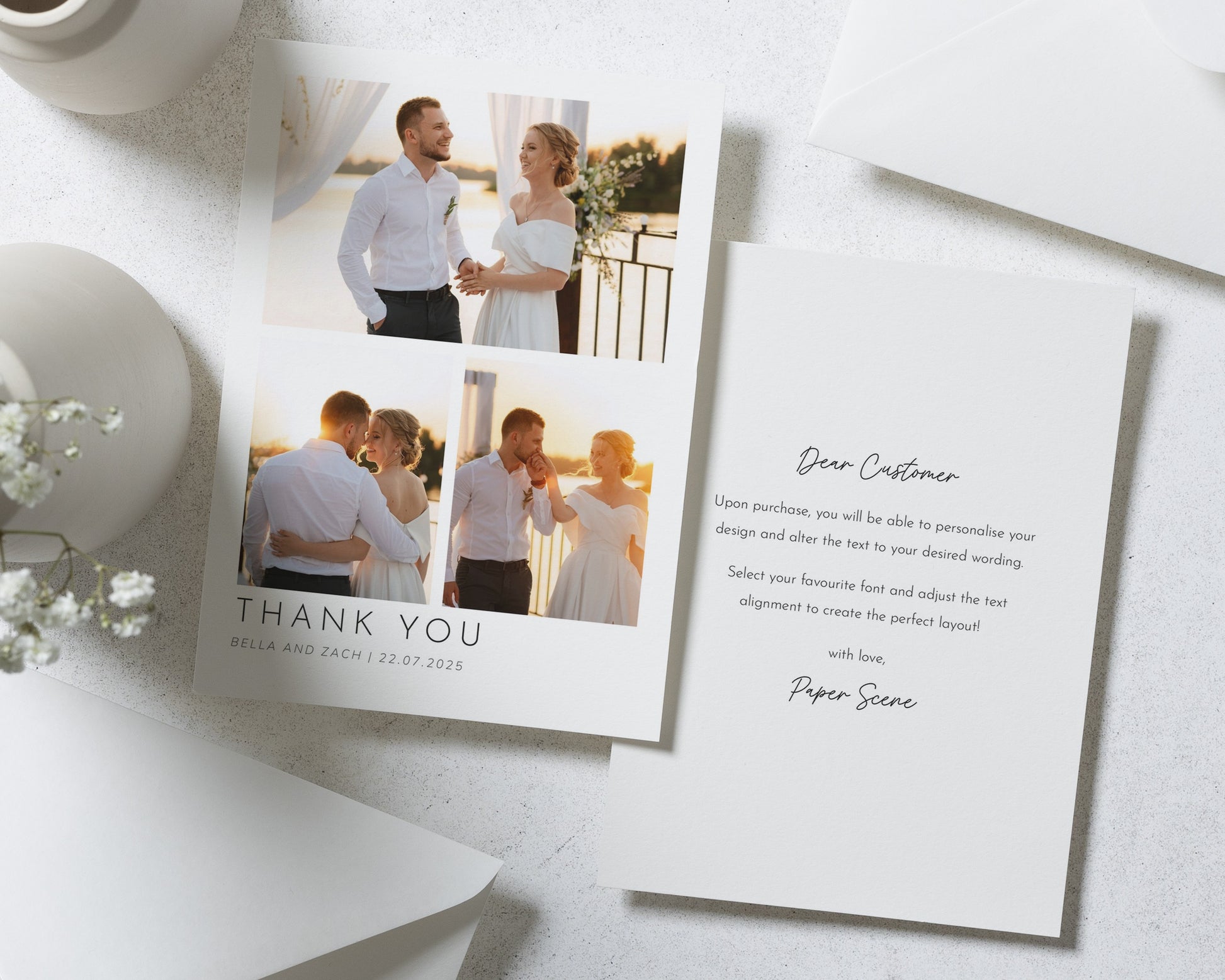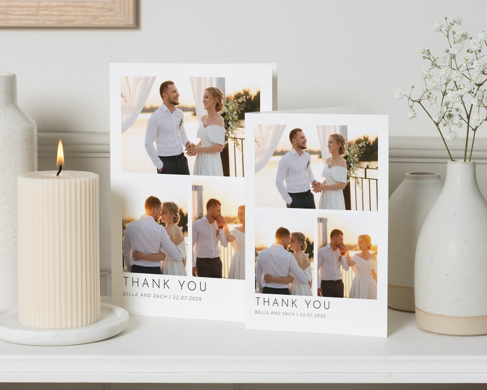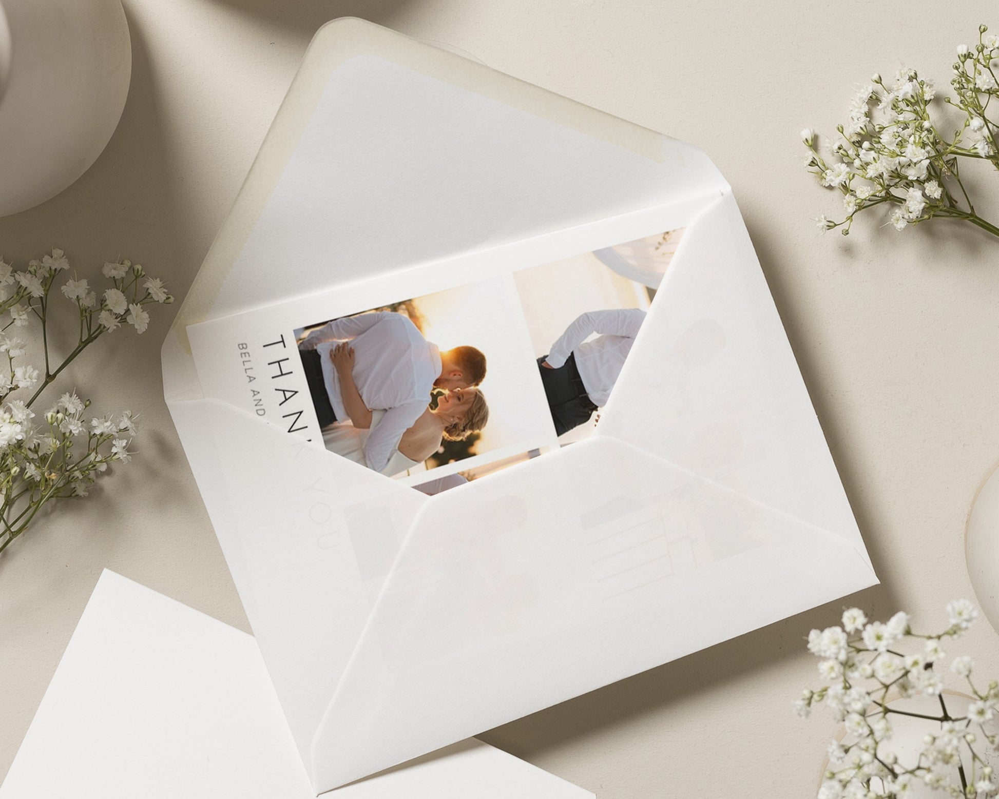 Our wedding thank you cards are fully personalised – featuring your chosen photo (or photos!) and wording to match your style. Whether you prefer something modern and minimal or a design with a touch of elegance, we’ll help you create a card that feels uniquely you.