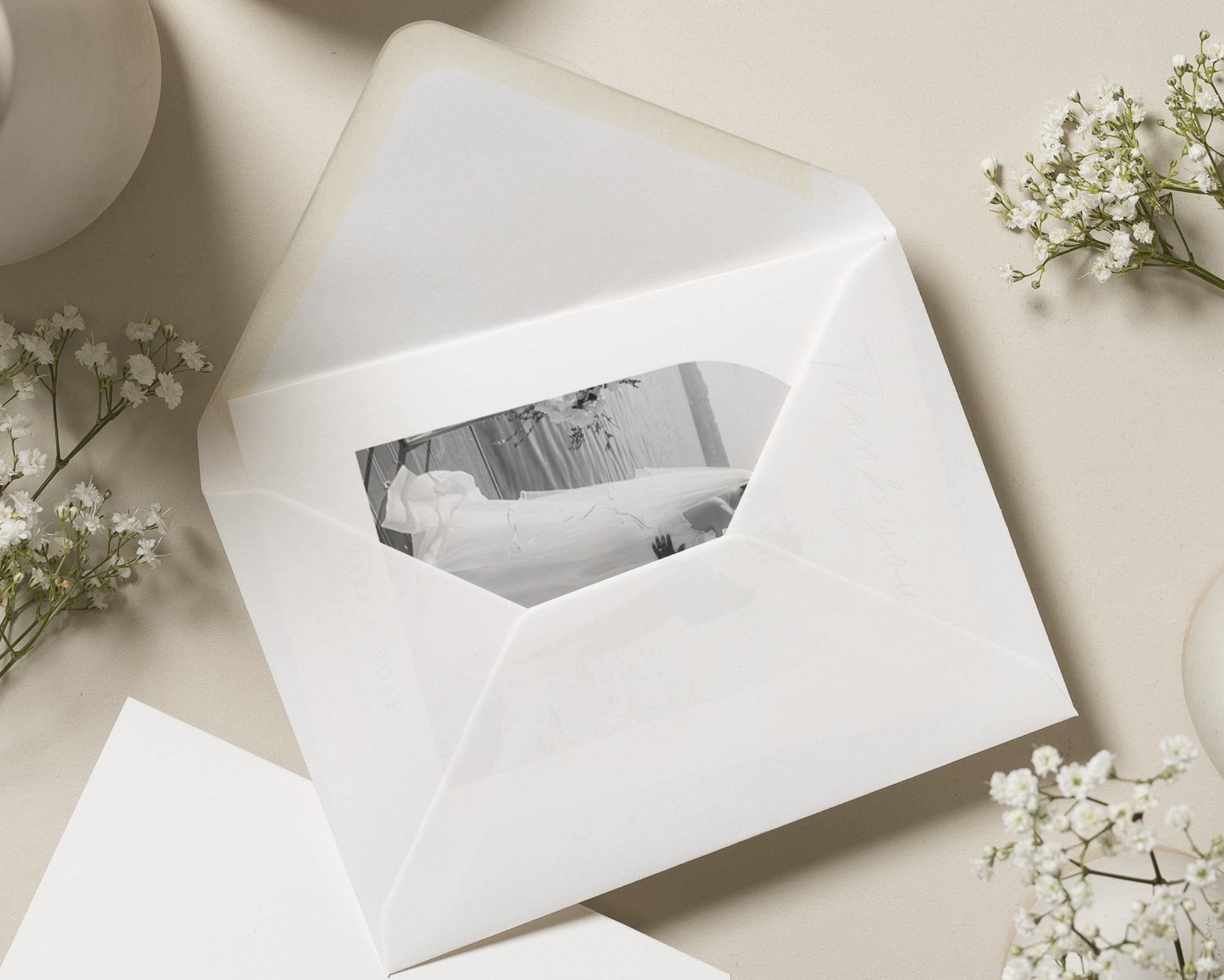 Every order includes premium heavyweight white envelopes with a diamond flap.