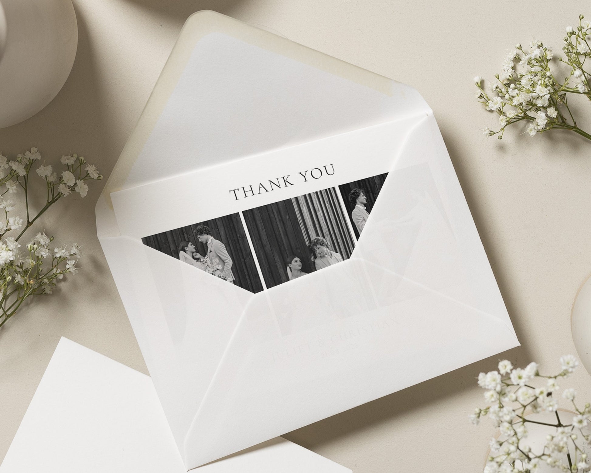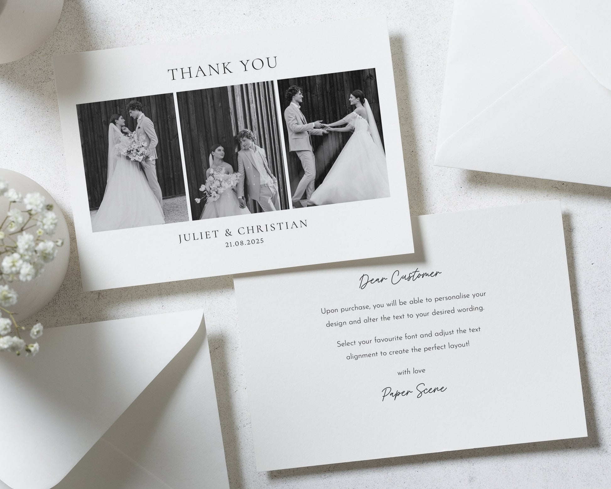 Our wedding thank you cards are fully personalised – featuring your chosen photo (or photos!) and wording to match your style. Whether you prefer something modern and minimal or a design with a touch of elegance, we’ll help you create a card that feels uniquely you.