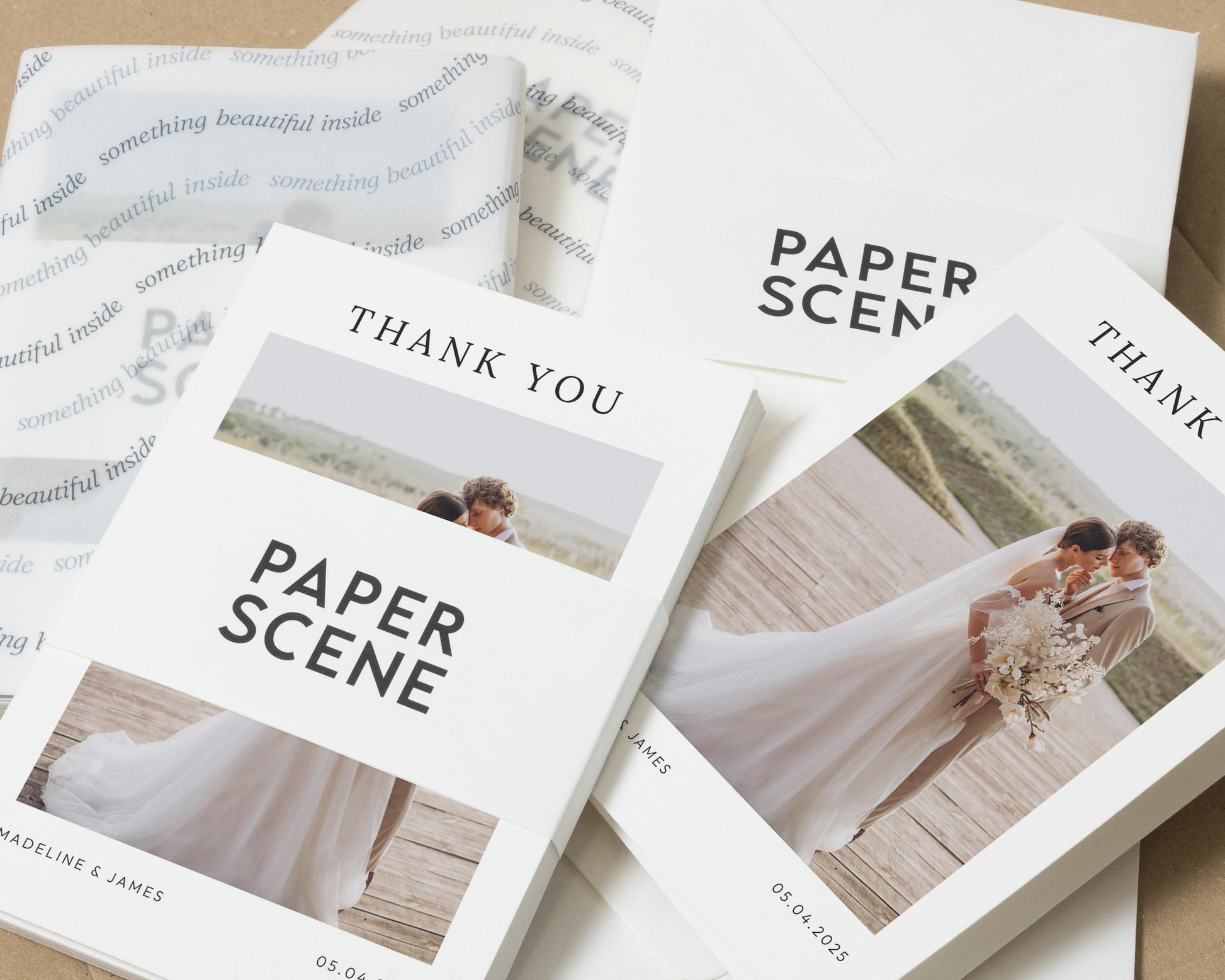 Our wedding thank you cards are fully personalised – featuring your chosen photo (or photos!) and wording to match your style. Whether you prefer something modern and minimal or a design with a touch of elegance, we’ll help you create a card that feels uniquely you.