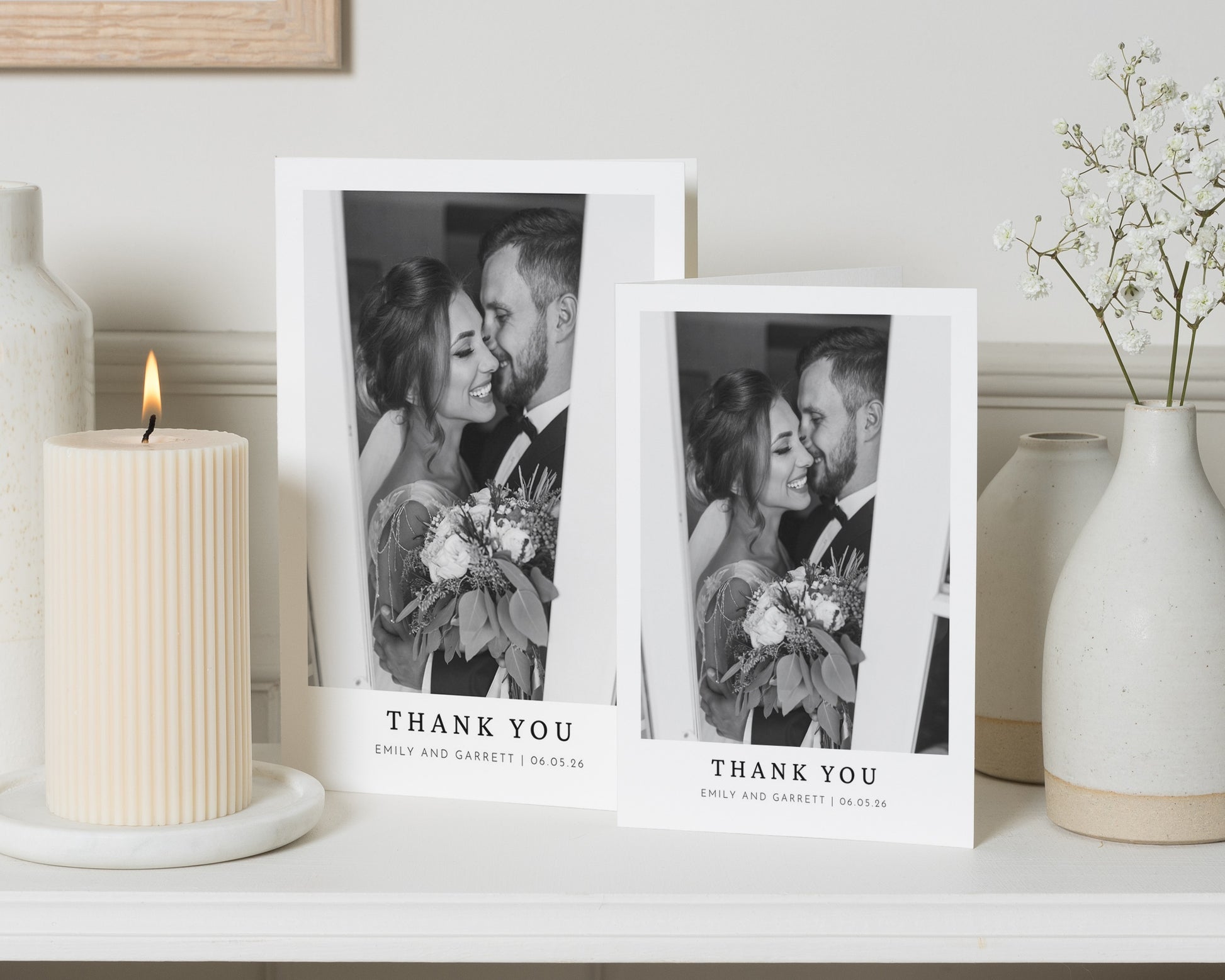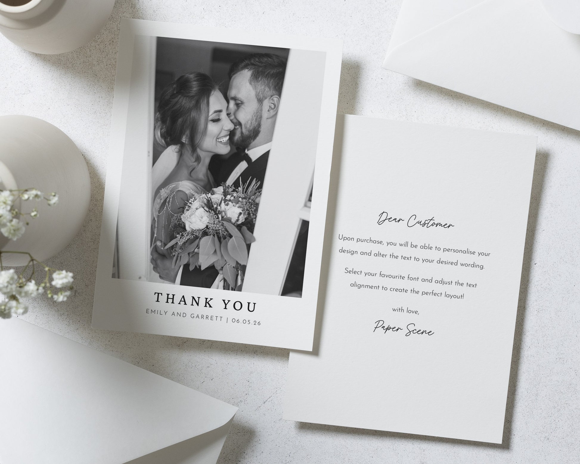 Personalised Wedding Thank You Card, Photo Wedding Thank You Card, Minimal Wedding Thank You Card, Folded Thank You Card