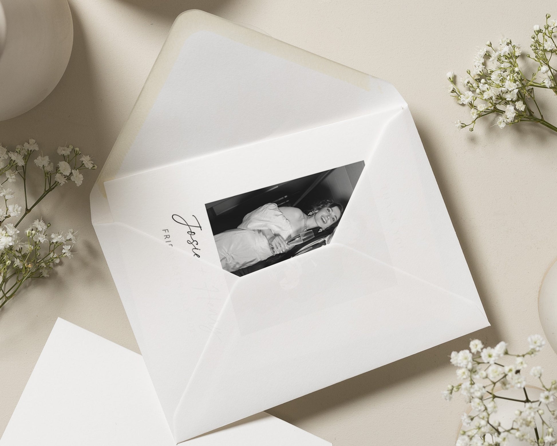 Every order includes premium heavyweight white envelopes with a diamond flap.