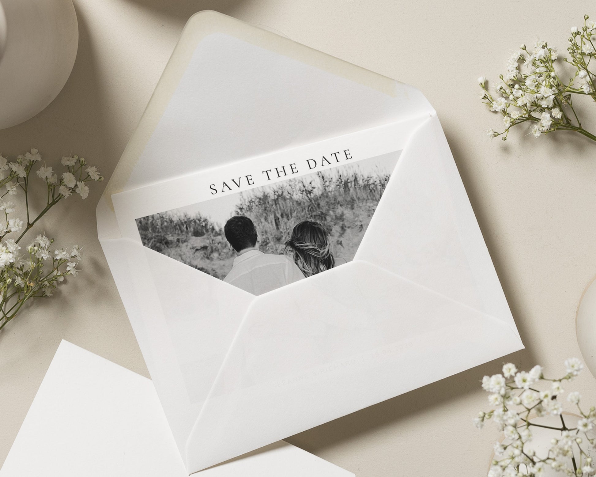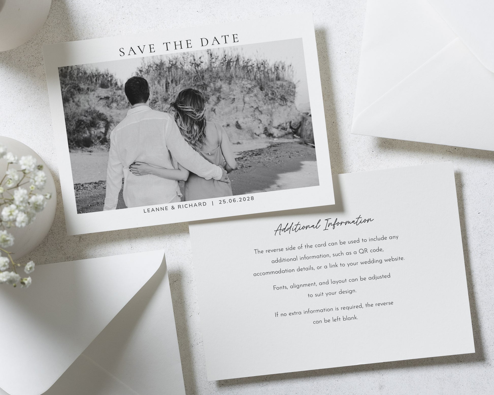 Our Save the Date cards are fully customisable – you can change all of the text to match your names, date, and wedding vibe. Whether you're planning a formal celebration or something more relaxed, we’ll help you create a design that feels uniquely you.
