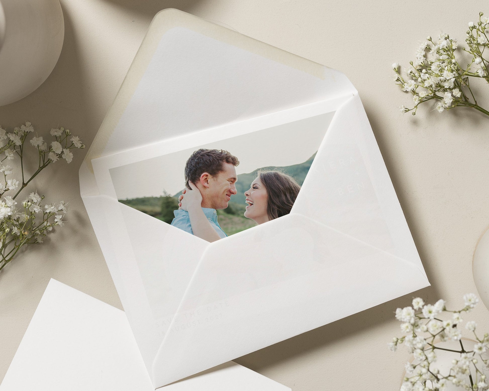 Our Save the Date cards are fully customisable – you can change all of the text to match your names, date, and wedding vibe. Whether you're planning a formal celebration or something more relaxed, we’ll help you create a design that feels uniquely you.