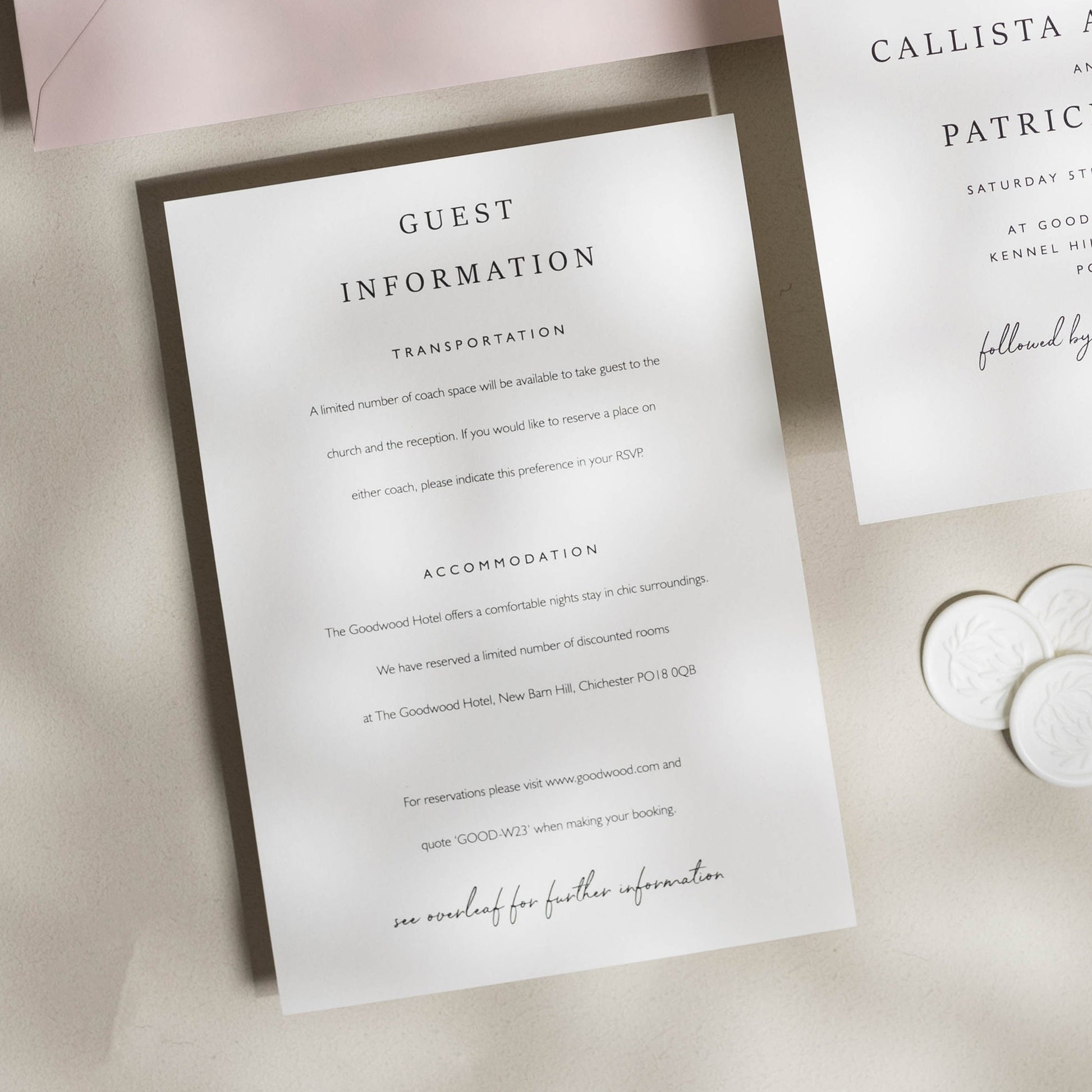 INFO CARDS: Useful for additional info such as taxi numbers, hotels, gift lists, poem's and more.