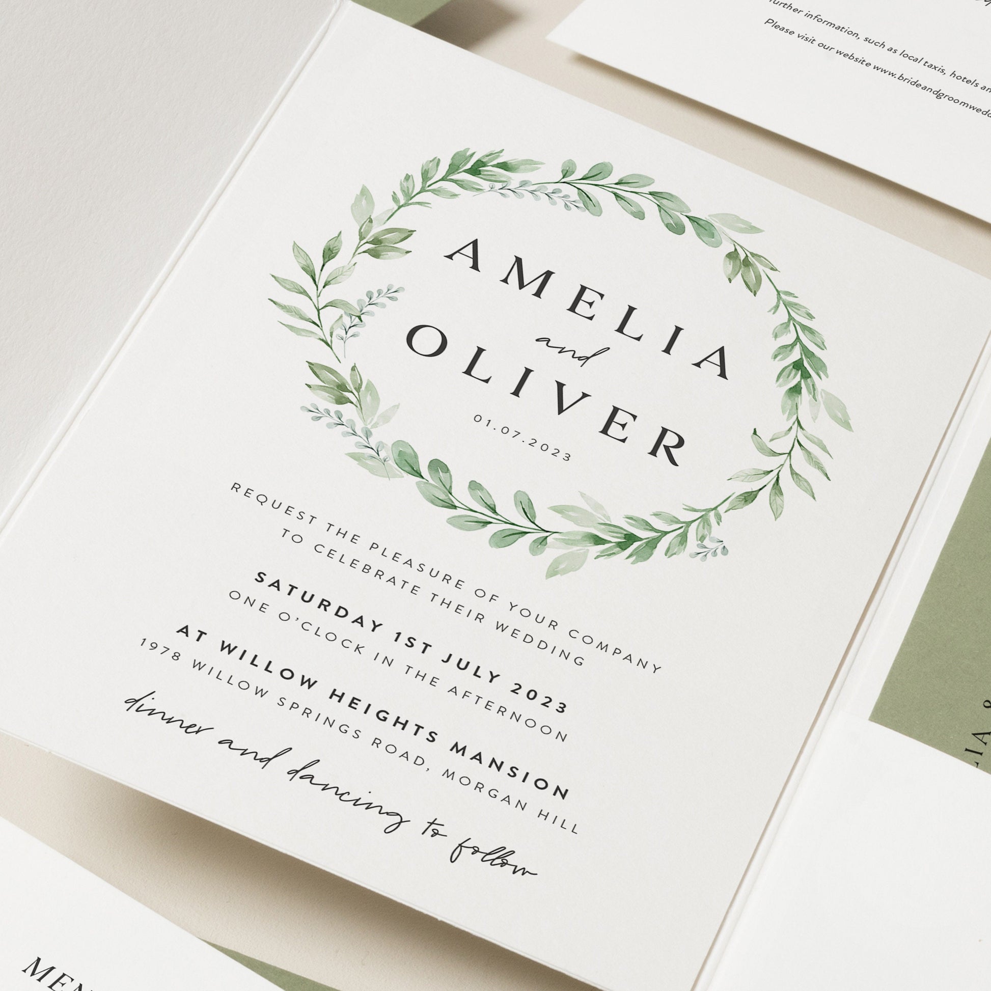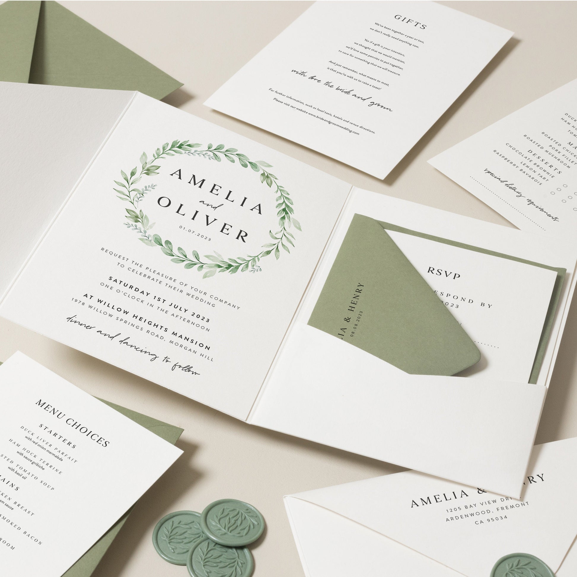 Pocketfold Botanical Wedding Invitations With Wax Seal 'Amelia'