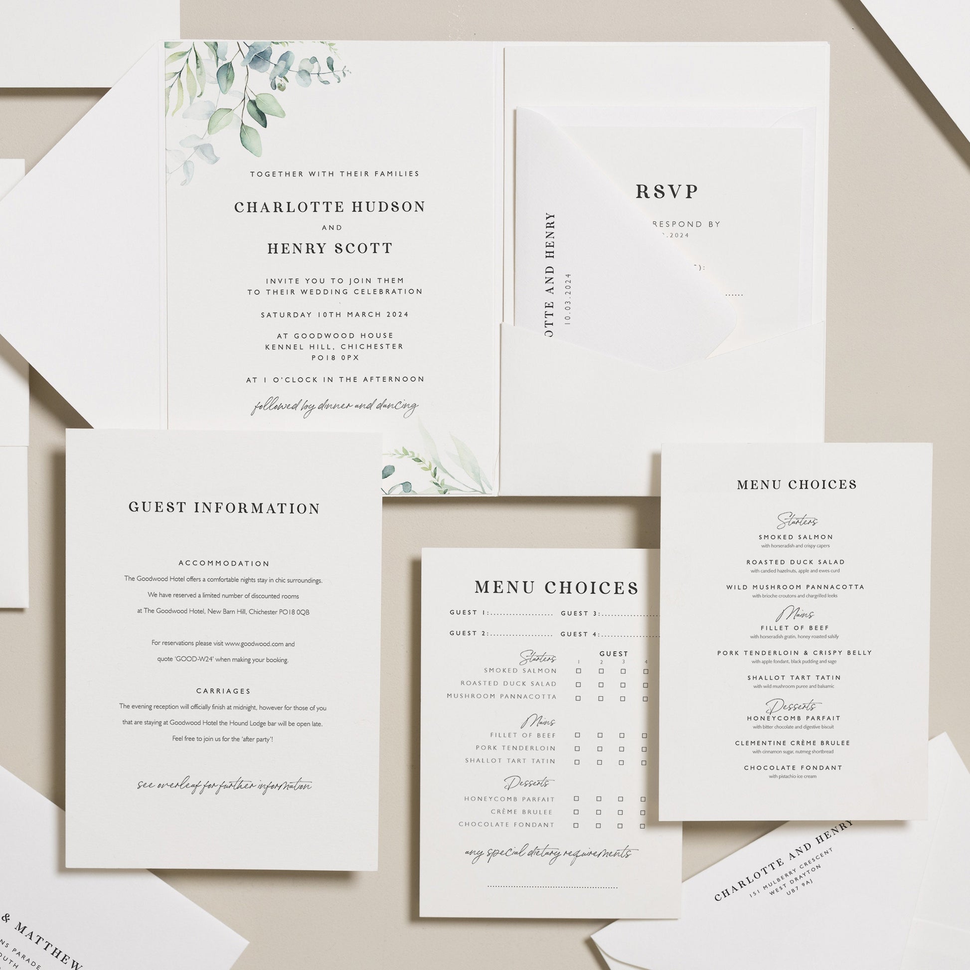 Pocketfold Floral Wedding Invitations Suite 'Charlotte'