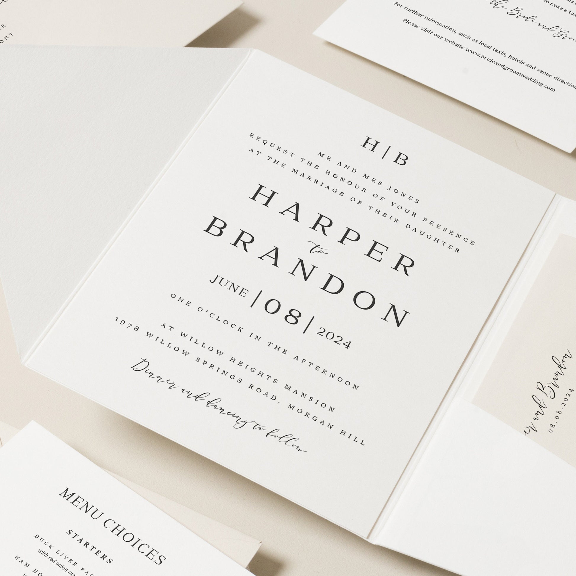 Pocketfold Wedding Invitations With Monogram Design 'Harper'