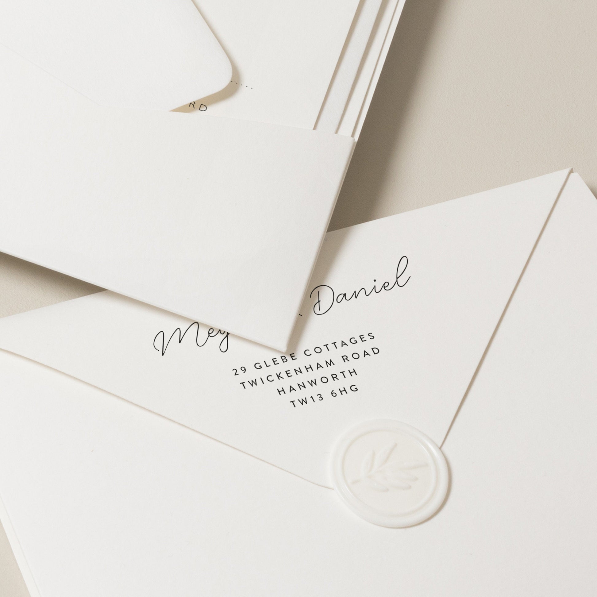 ENVELOPE ADDRESSING: Print your guest addresses on each envelope or include your return address on the reverse.