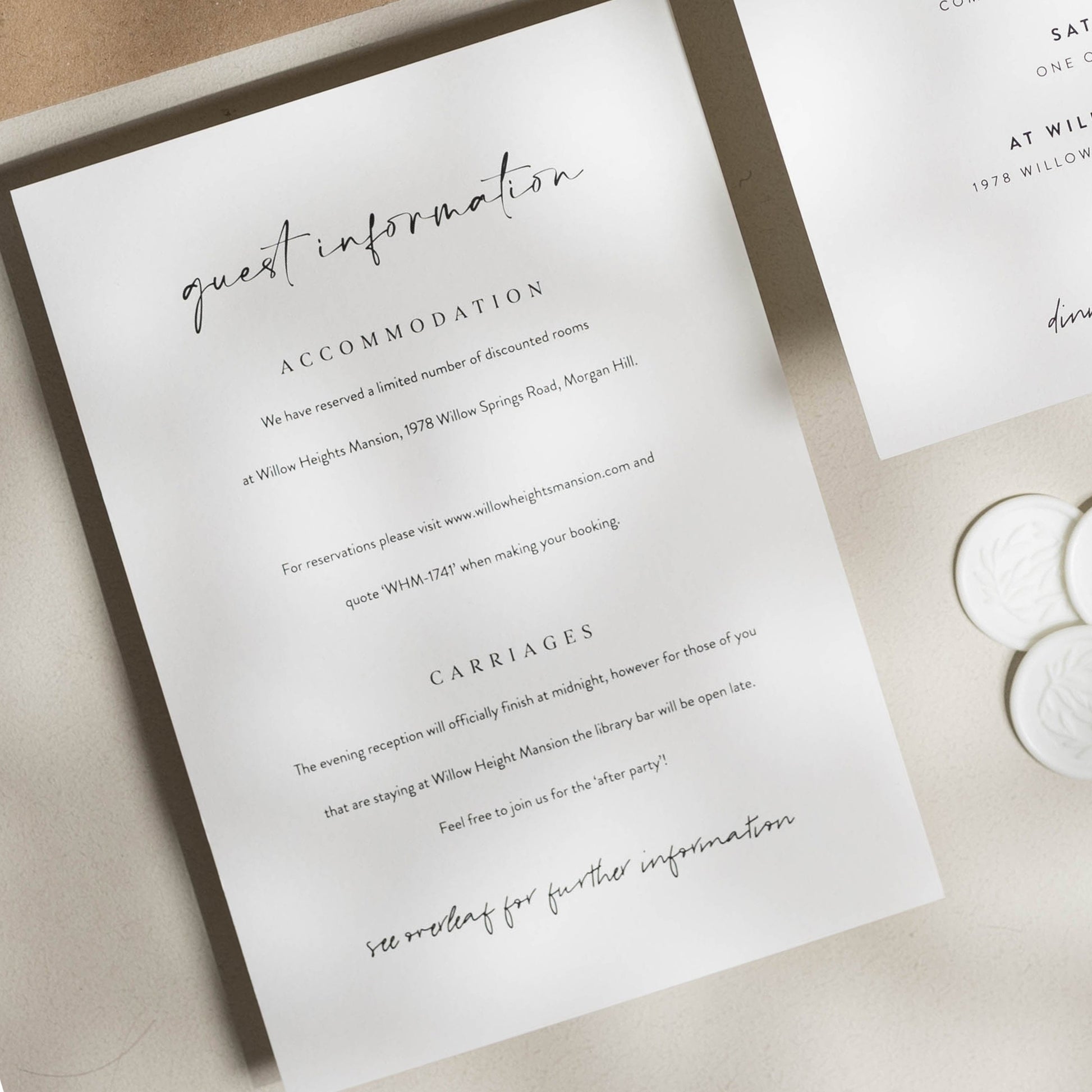 INFO CARDS: Useful for additional info such as taxi numbers, hotels, gift lists, poem's and more.
