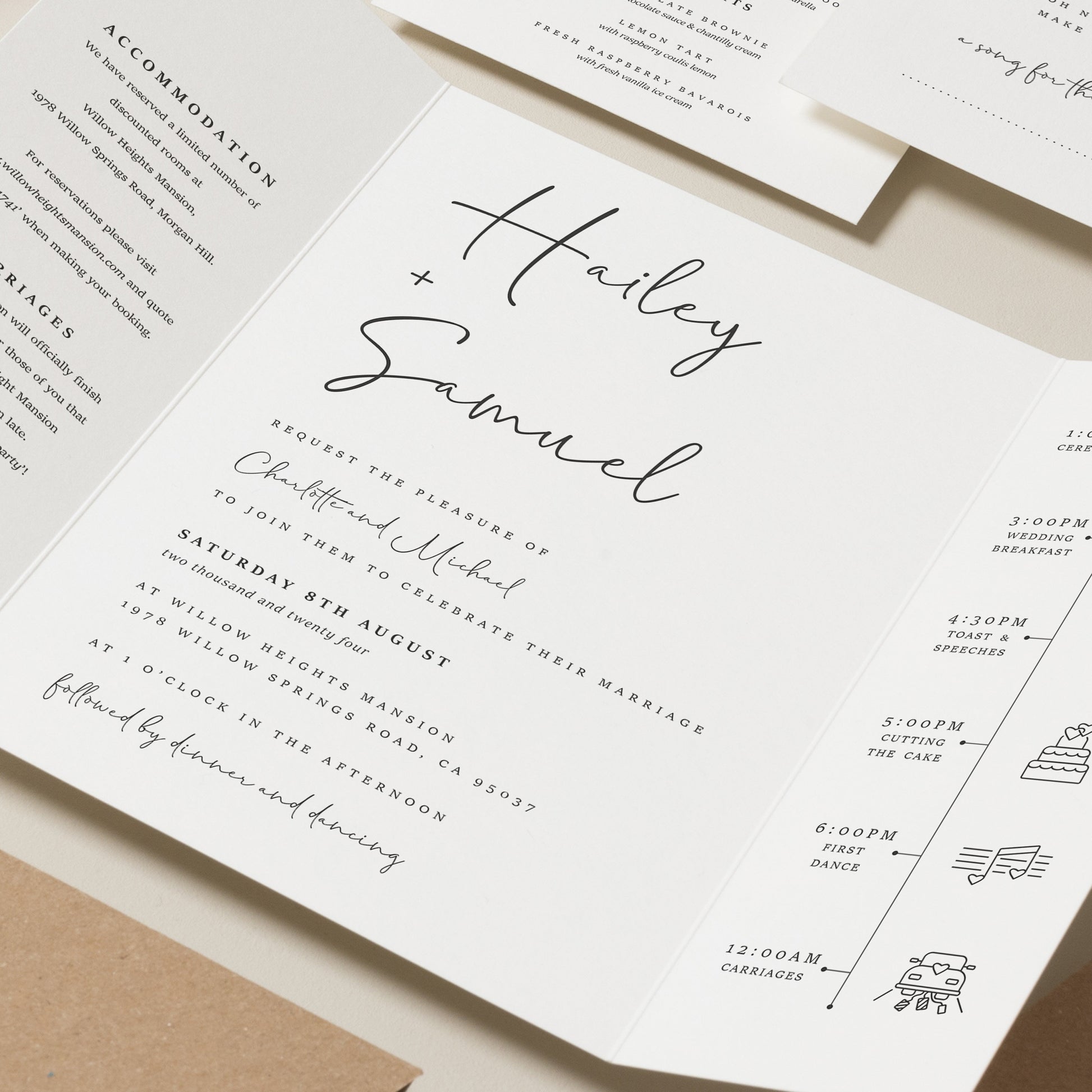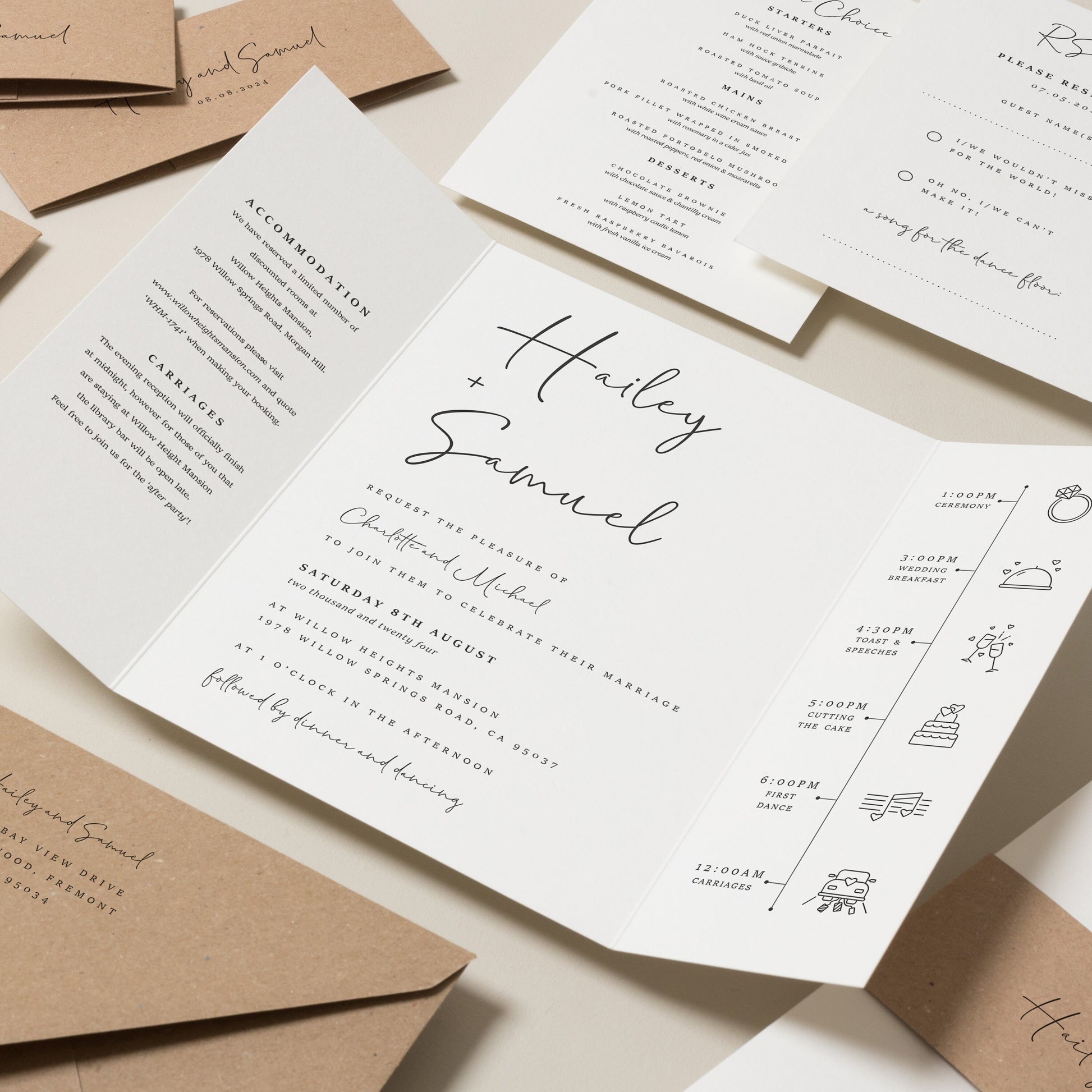 Ready to make a statement? Let's create your dream wedding invite! Our unique quote link for this design is quote.link/hailey-gatefold, all you need to do is pop it into your URL and it will offer you all the options to add to make it personal.