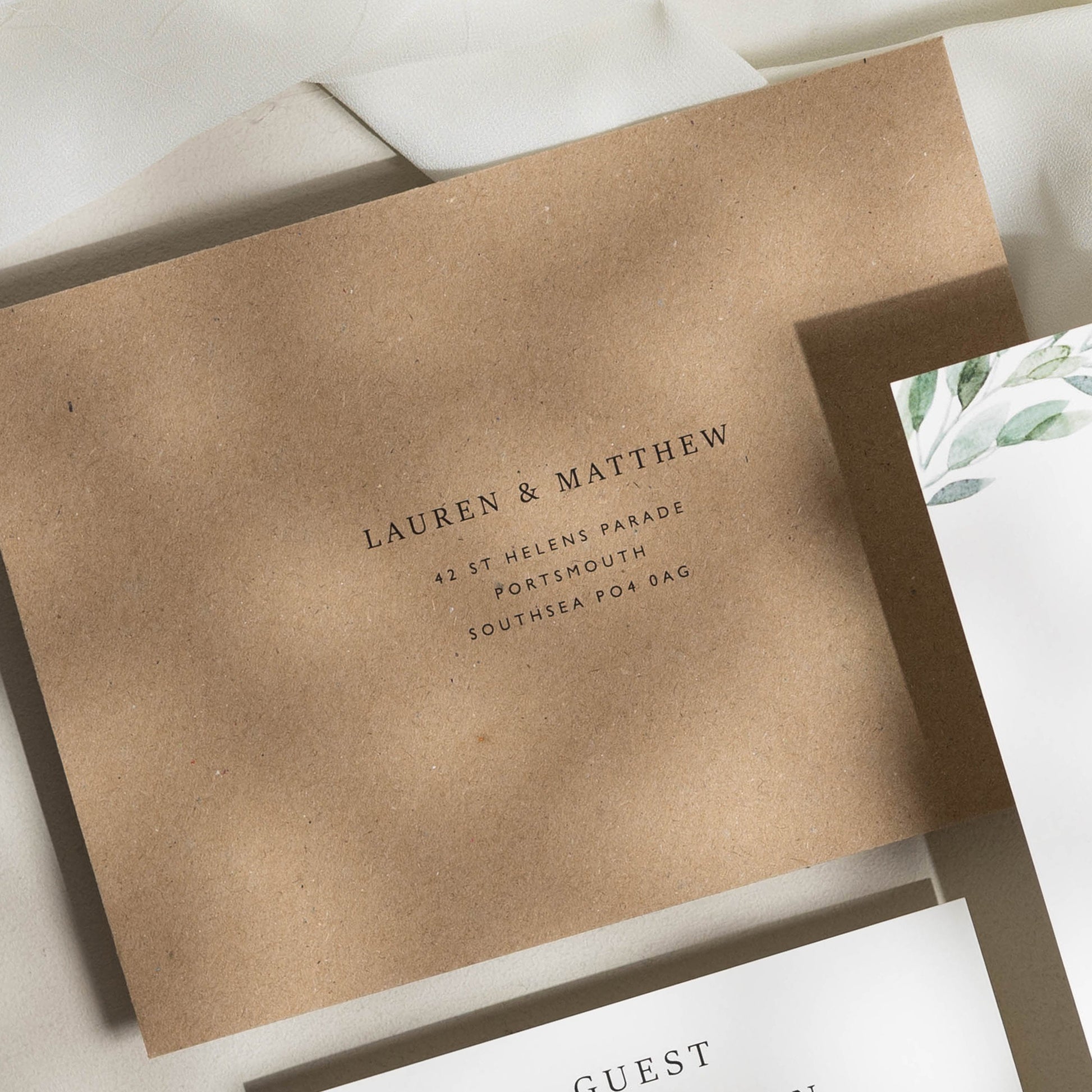 ENVELOPE ADDRESSING: Print your guest addresses on each envelope or include your return address on the reverse.
