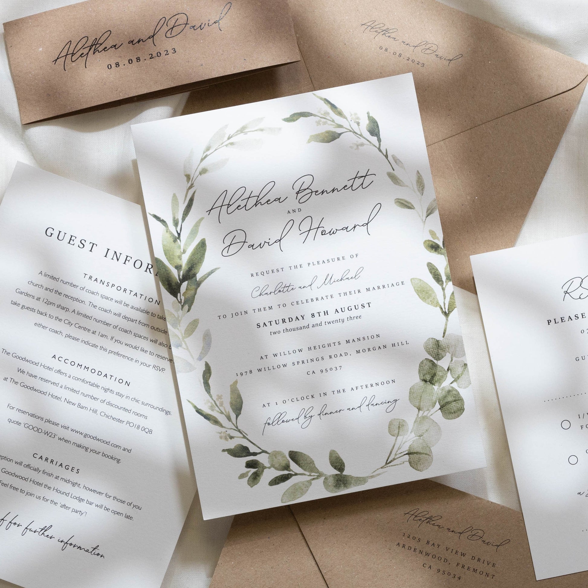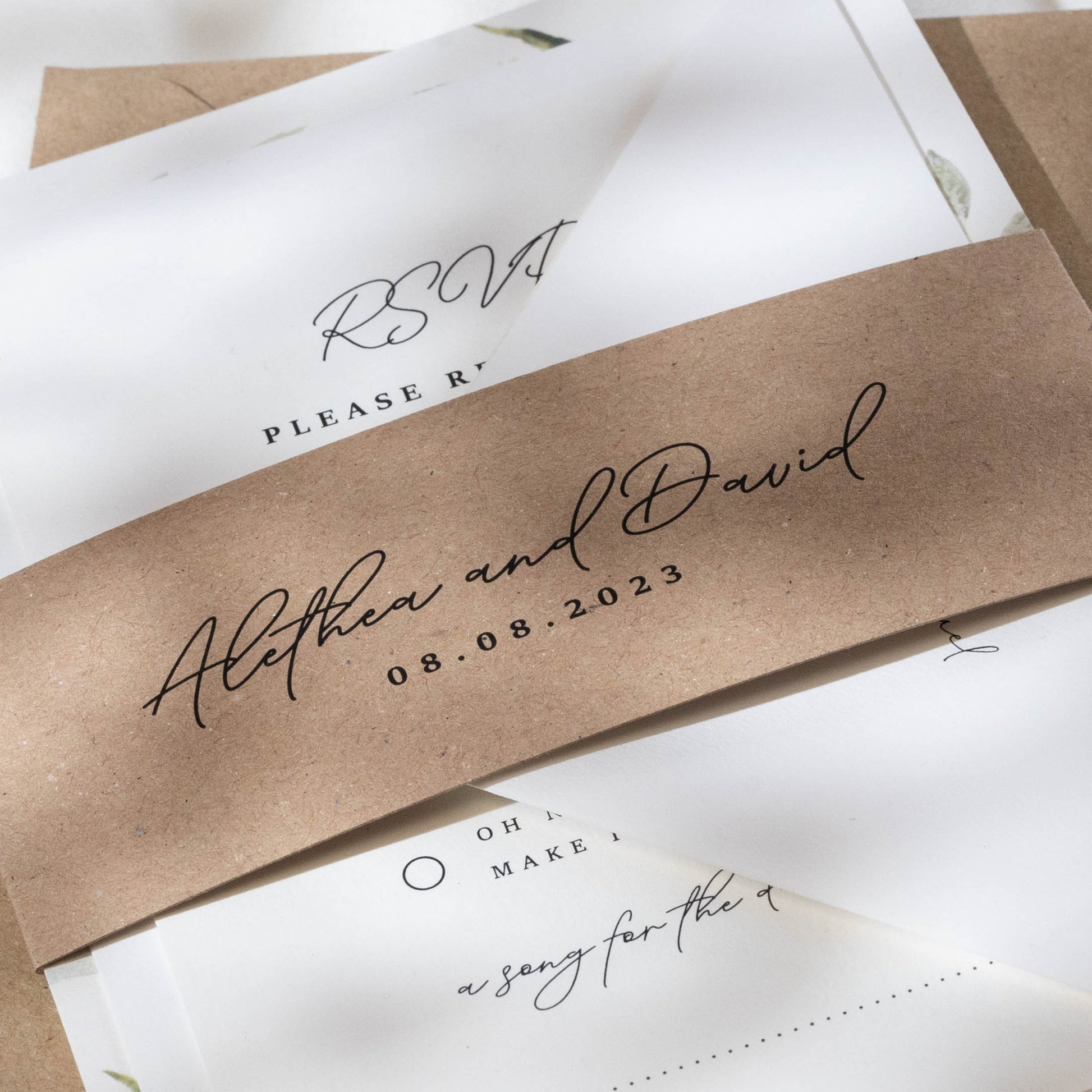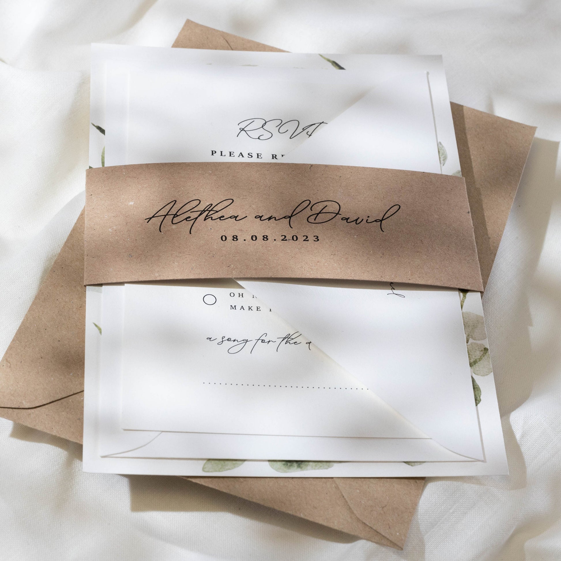 Rustic Wedding Invitation Set with Personalised Kraft Bellyband 'Alethea'