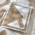 VELLUM JACKETS: Our translucent vellum jackets wrap around your invitations to add interest, texture and intrigue.