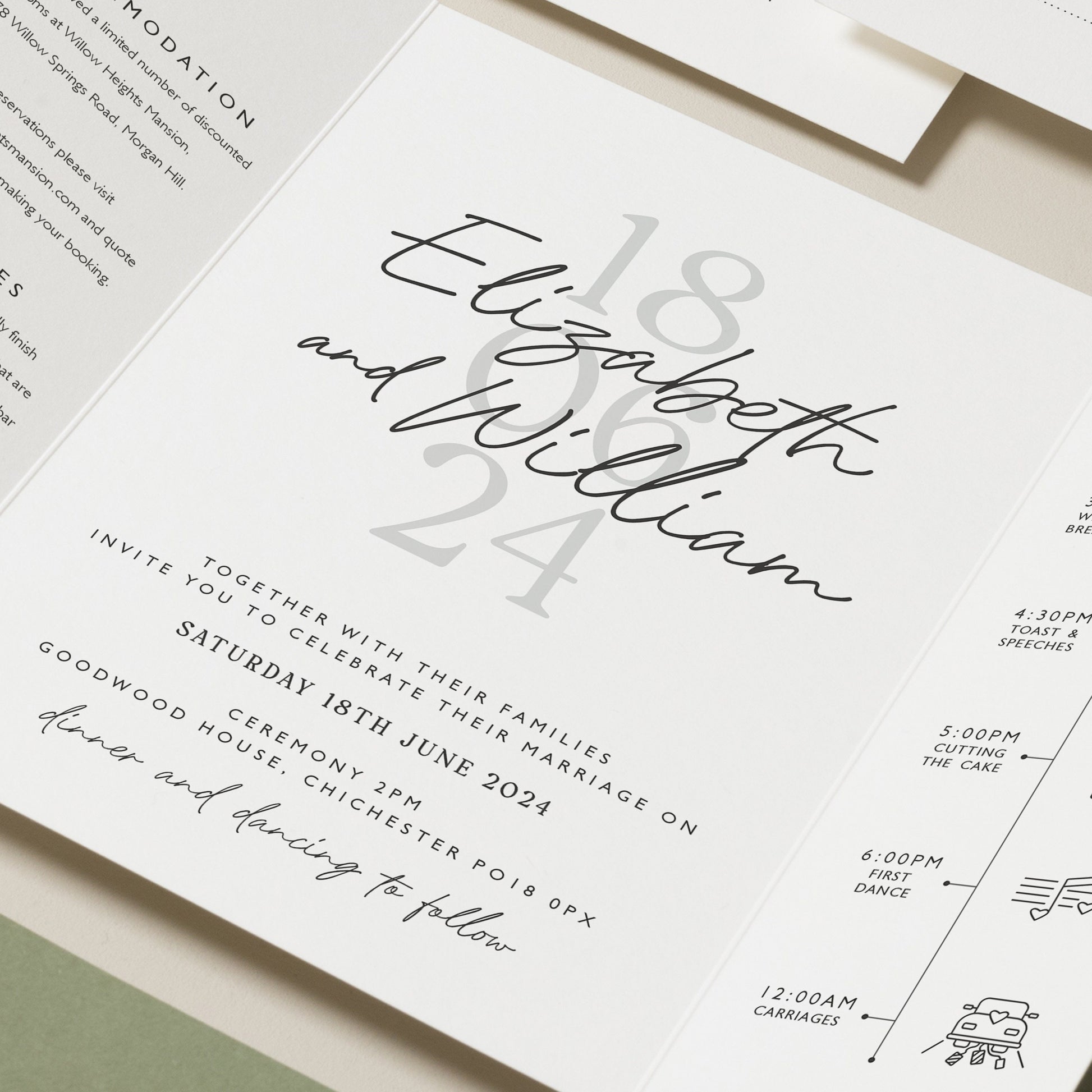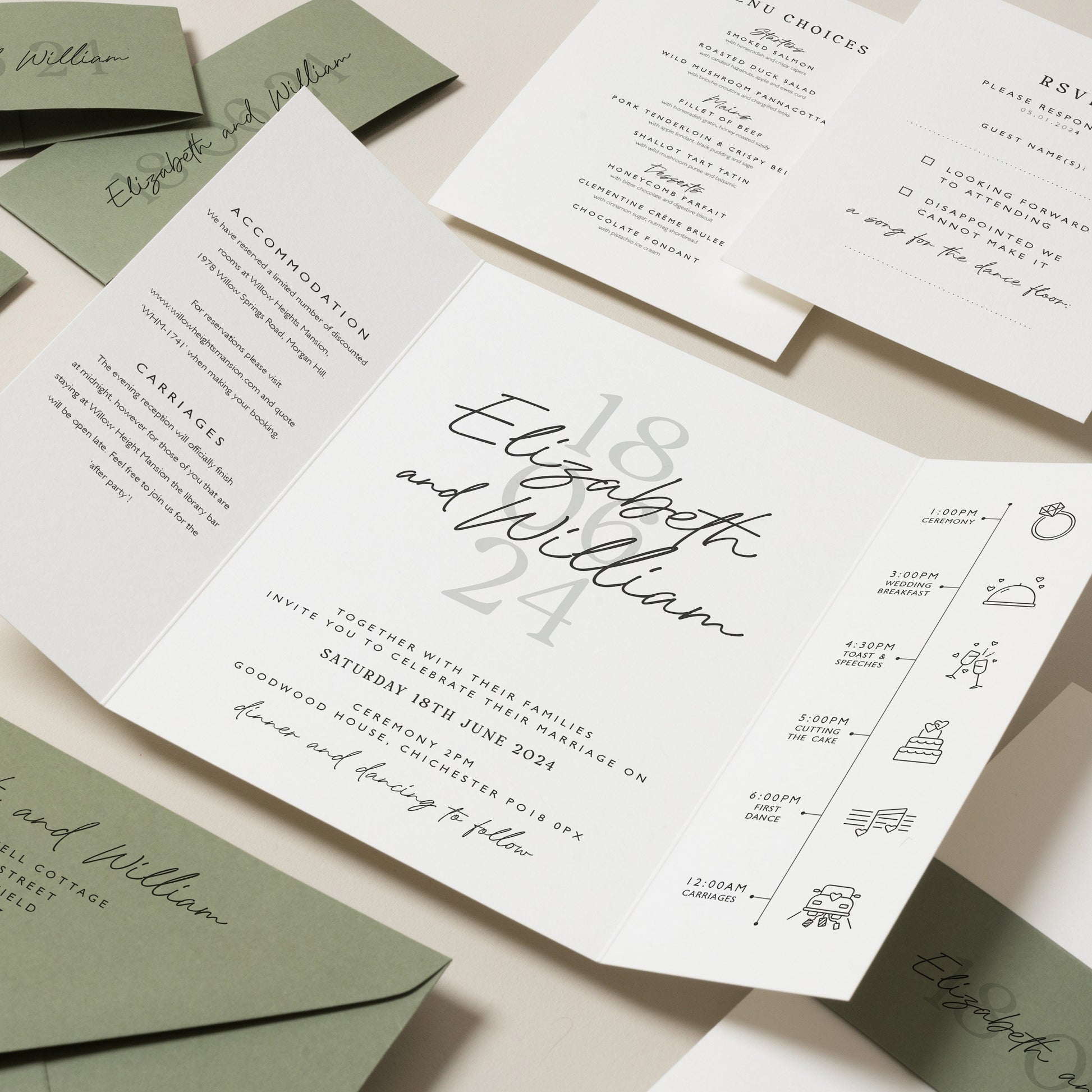 Sage Green Gatefold Wedding Invitations 'Elizabeth'