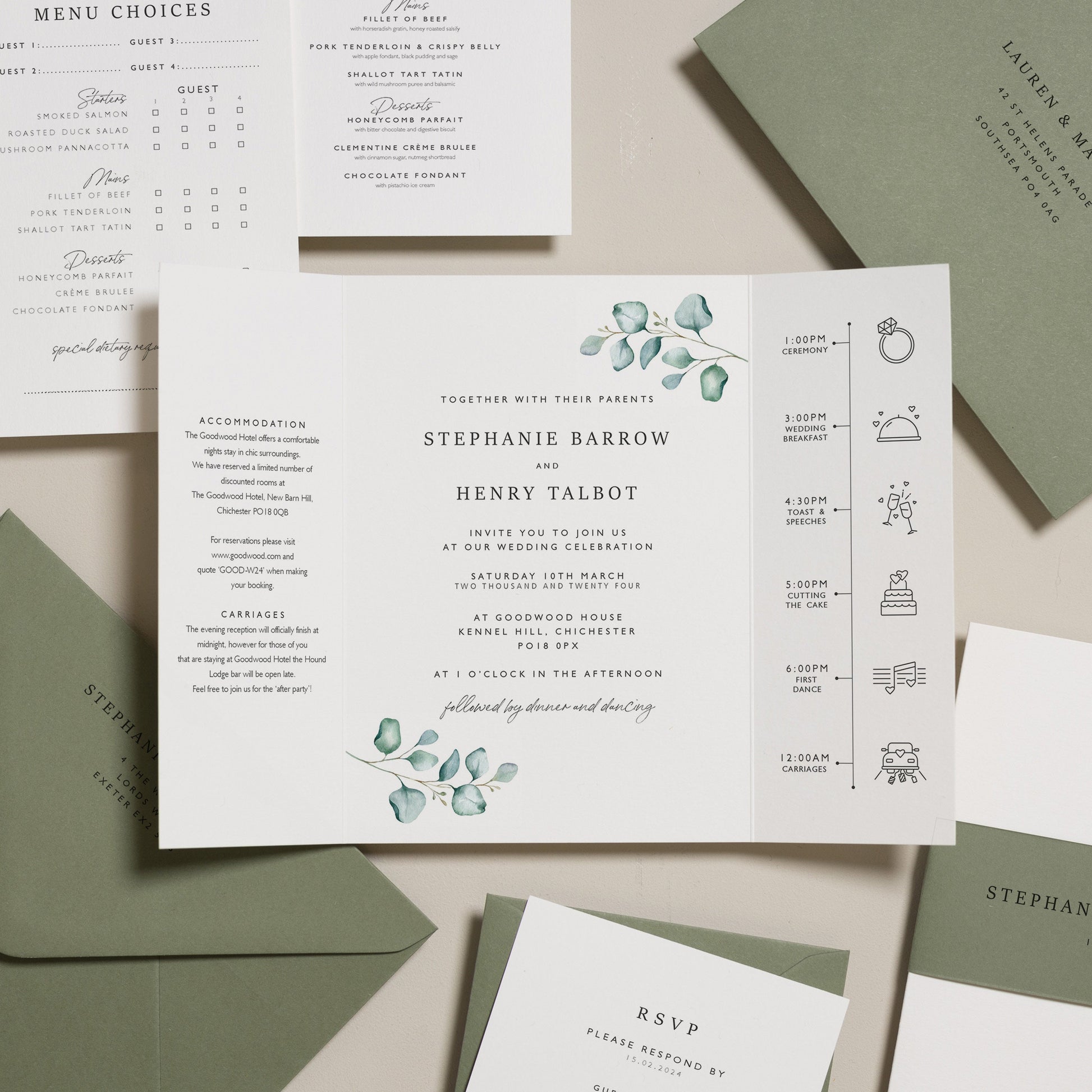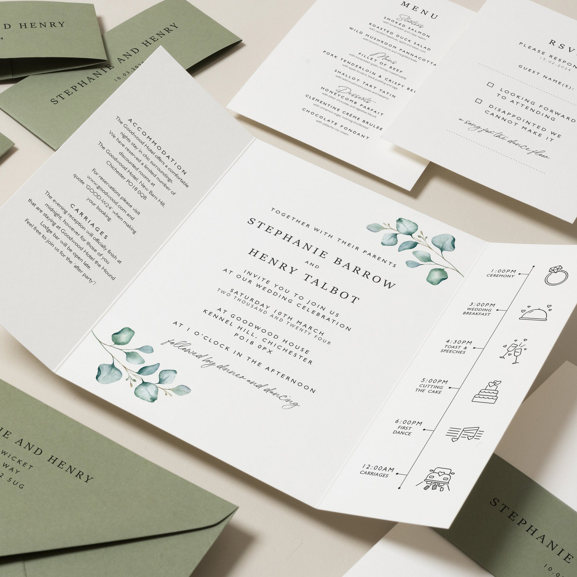 Sage Green Wedding Invitation Suite 'Stephanie'