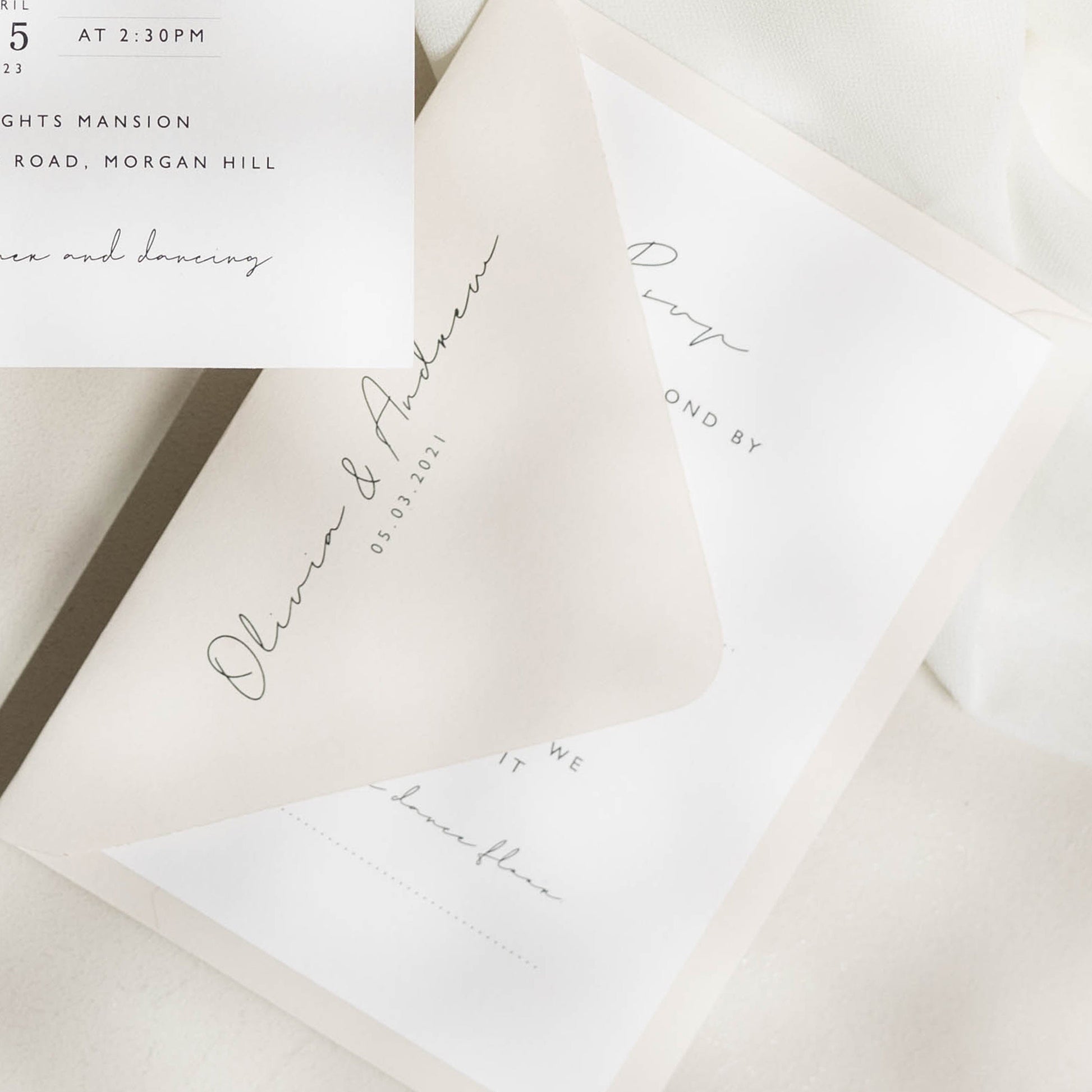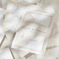 VELLUM JACKETS: Our translucent vellum jackets wrap around your invitations to add interest, texture and intrigue.