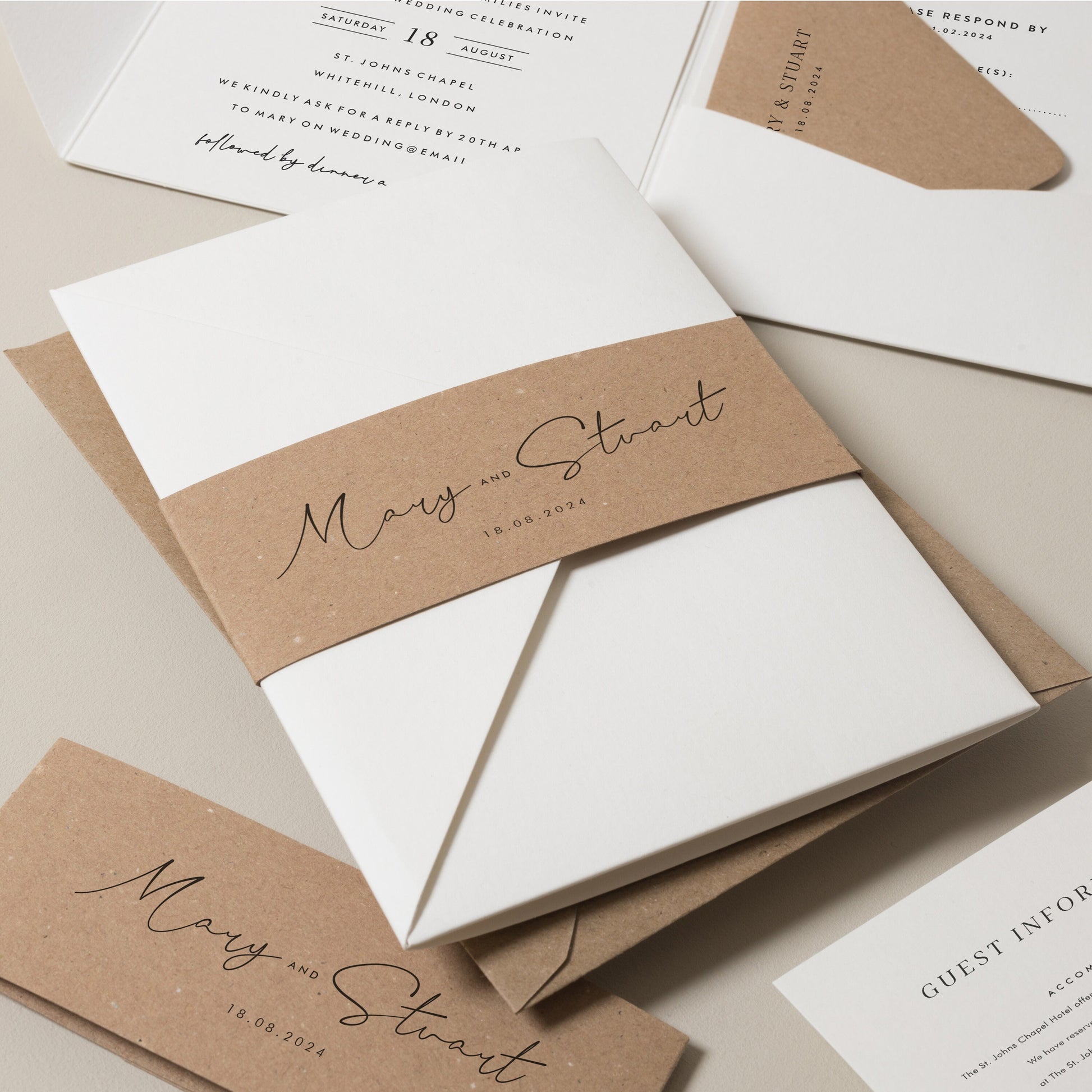 Simple Wedding Invitation Set Kraft 'Mary'
