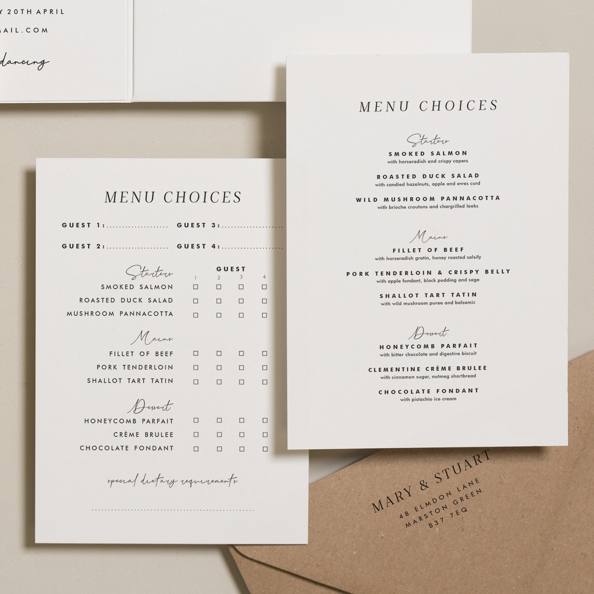 ENVELOPE ADDRESSING: Print your guest addresses on each envelope or include your return address on the reverse.