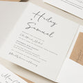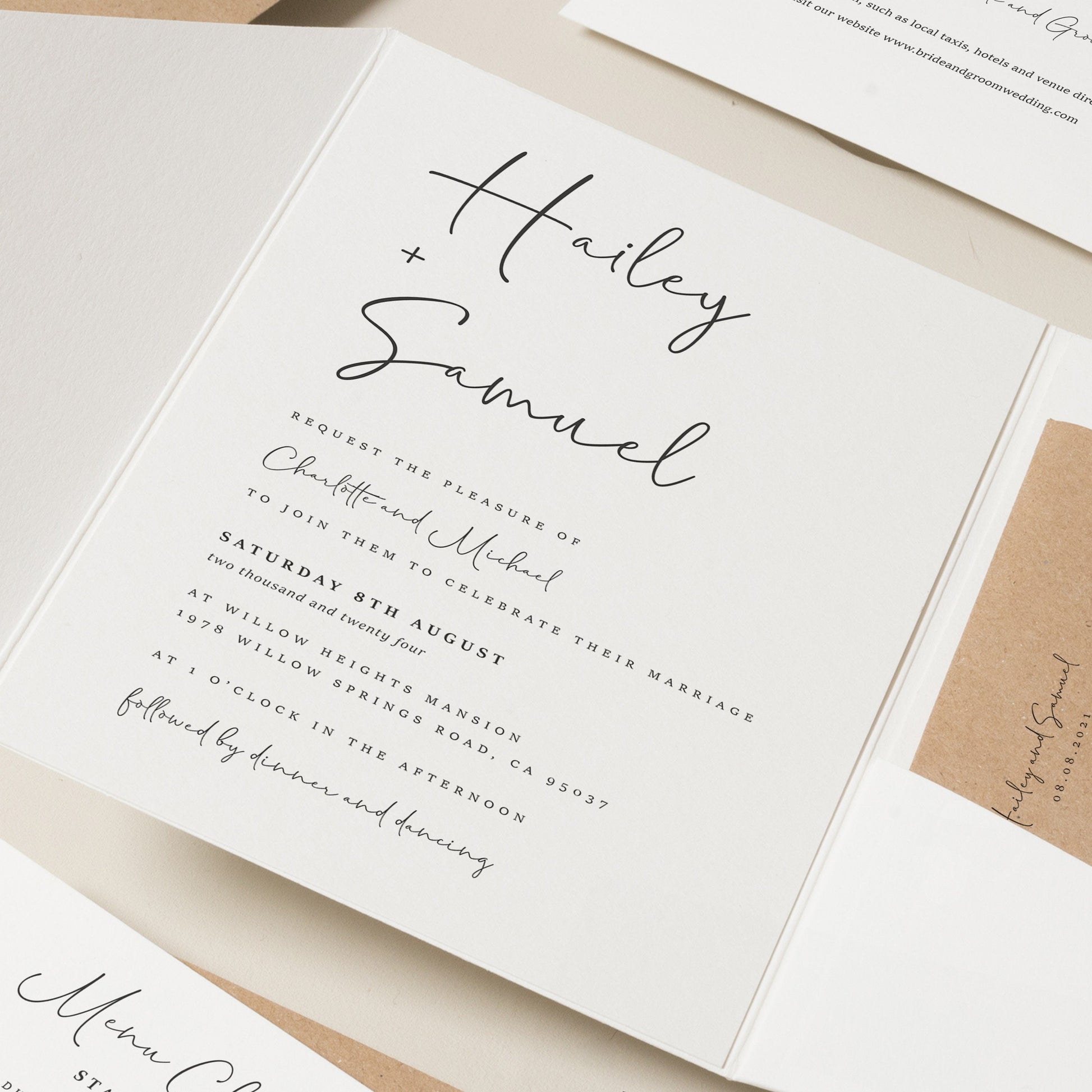 Ready to make a statement? Let's create your dream wedding invite! Our unique quote link for this design is quote.link/hailey-pocketfold, all you need to do is pop it into your URL and it will offer you all the options to add to make it personal.