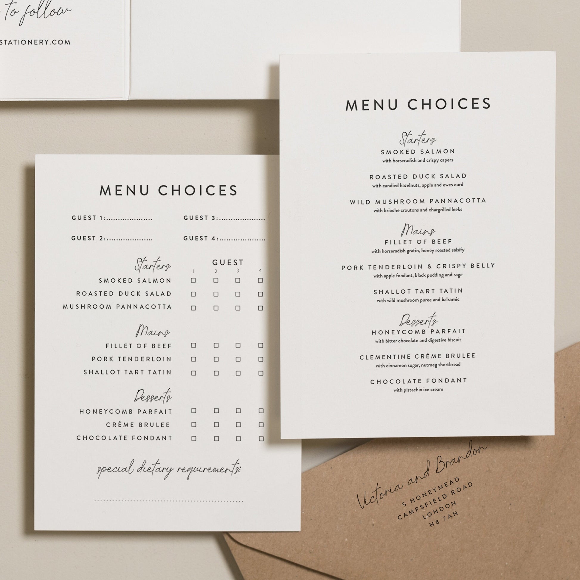 RSVPS: Choose one sided for a simple yes/no response or both sides for menu choices.