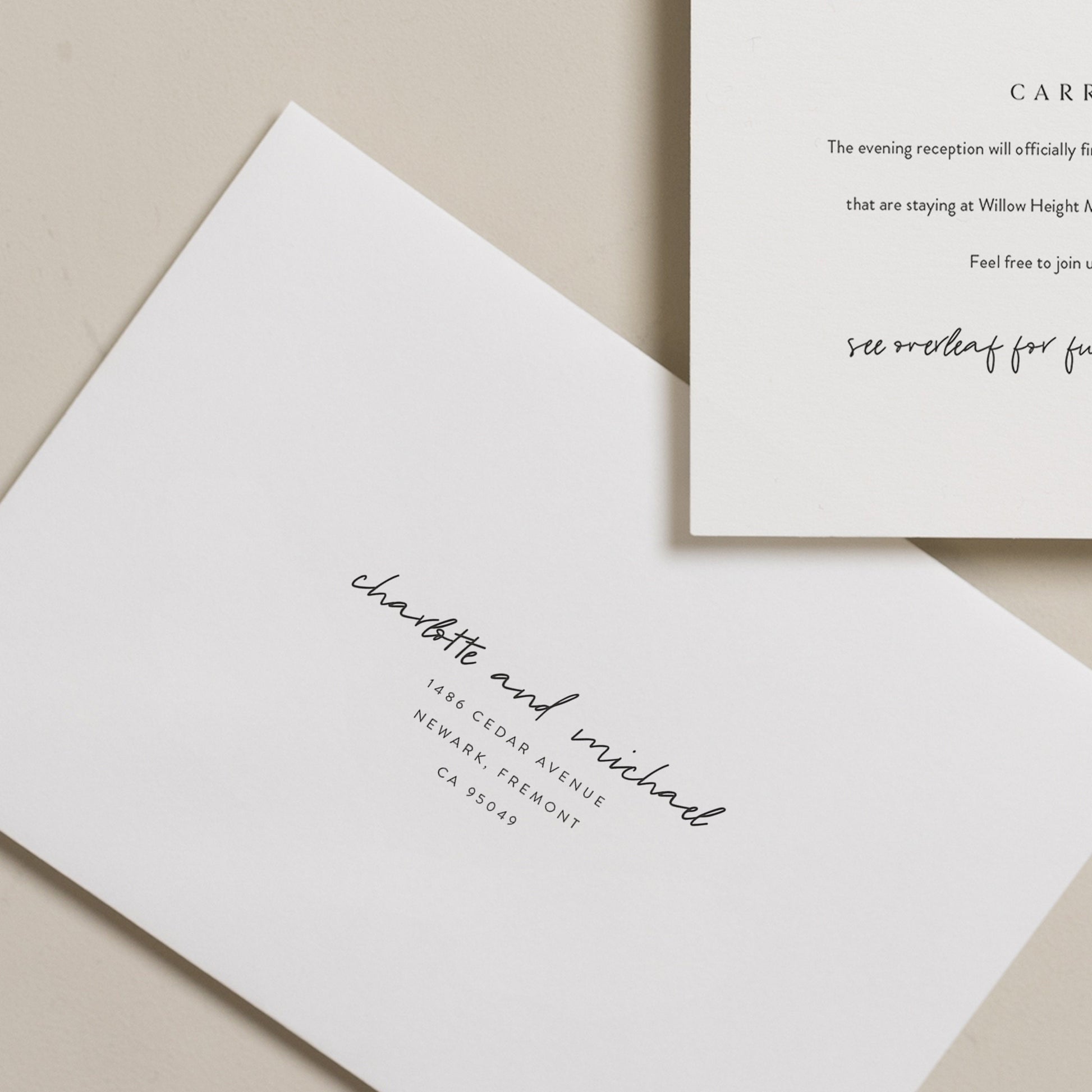 ENVELOPE ADDRESSING: Print your guest addresses on each envelope or include your return address on the reverse.
