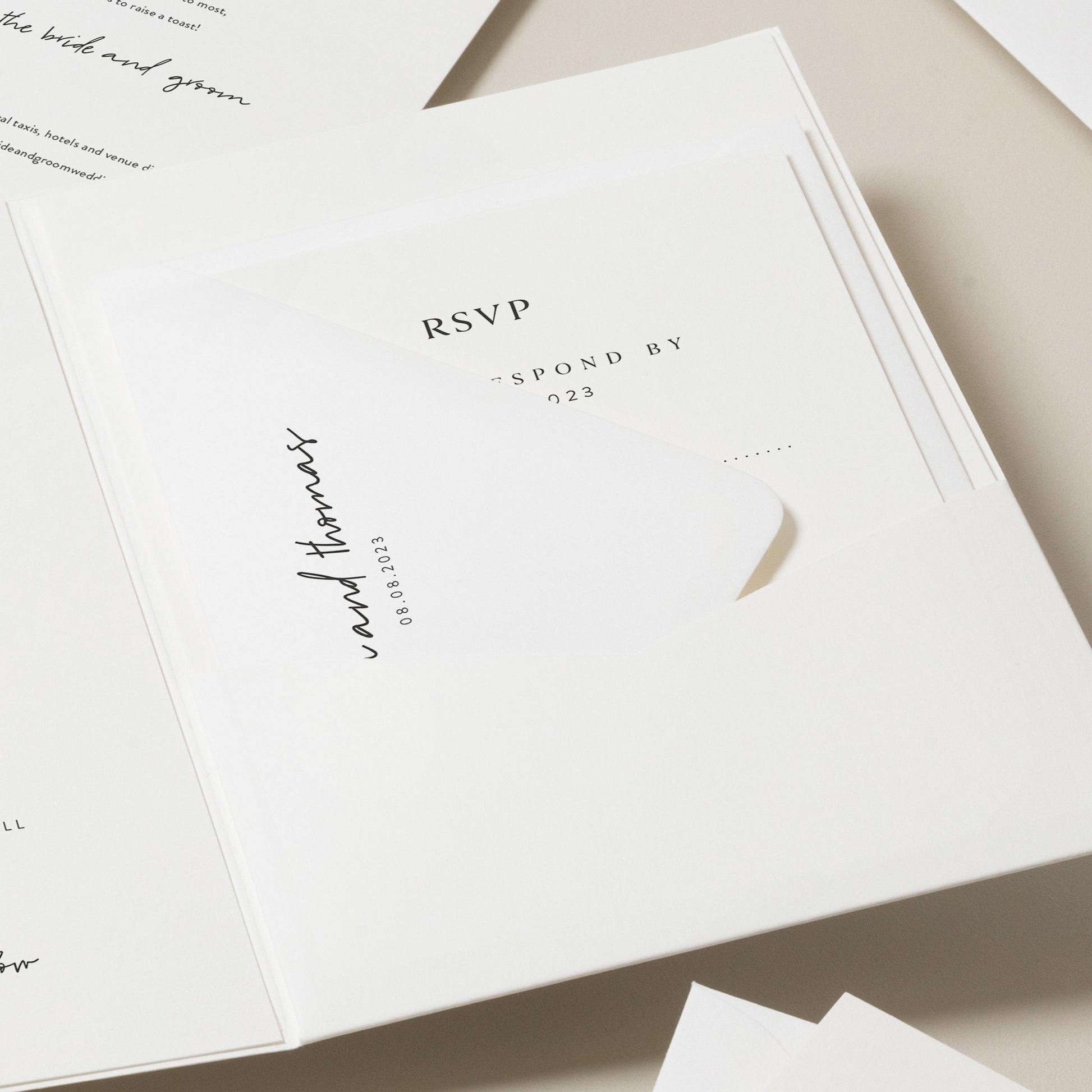Ready to make a statement? Let's create your dream wedding invite! Our unique quote link for this design is quote.link/chelsea-pocketfold, all you need to do is pop it into your URL and it will offer you all the options to add to make it personal.