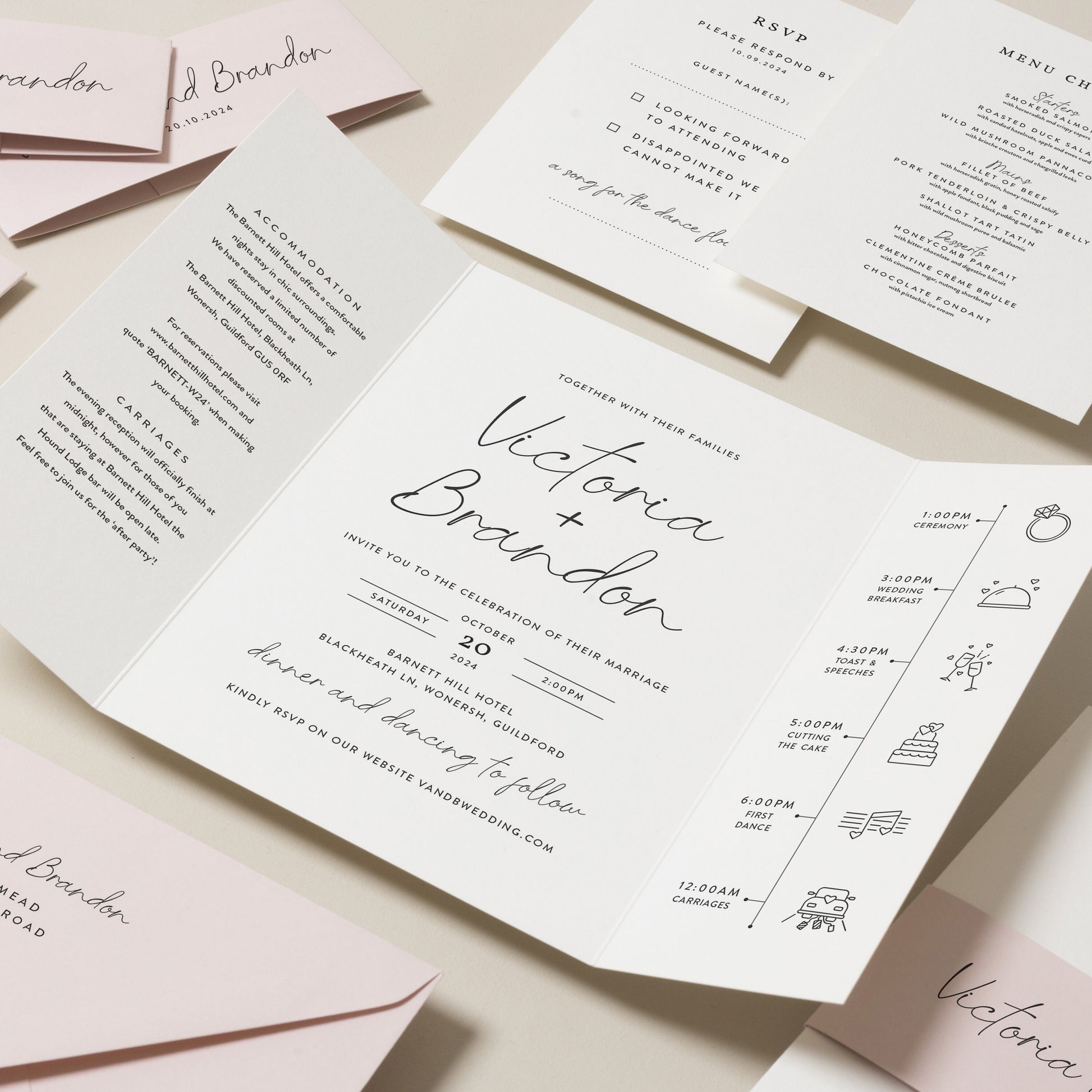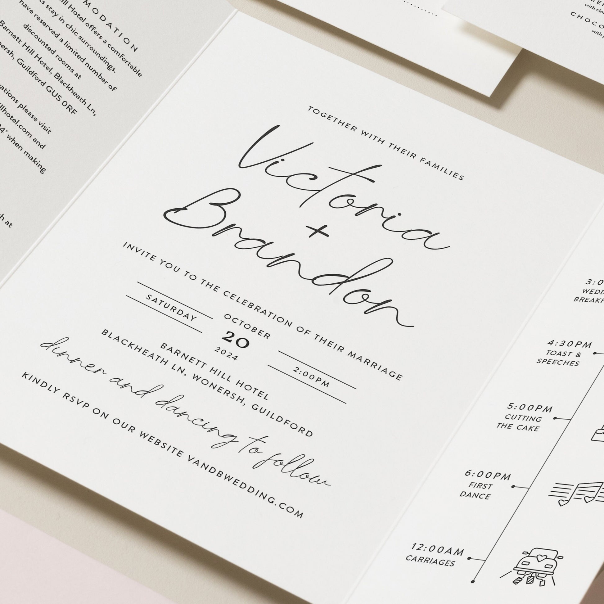 Simple White And Black Wedding Invitation Set 'Victoria'