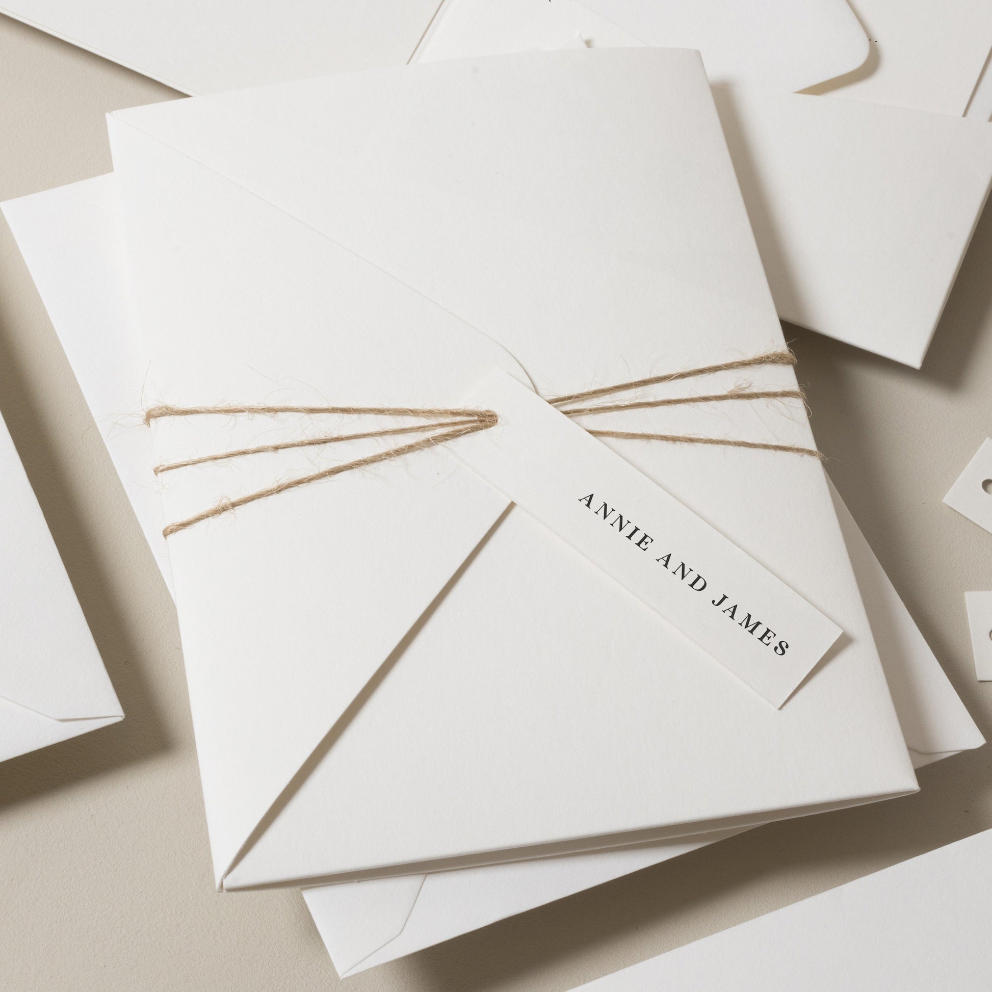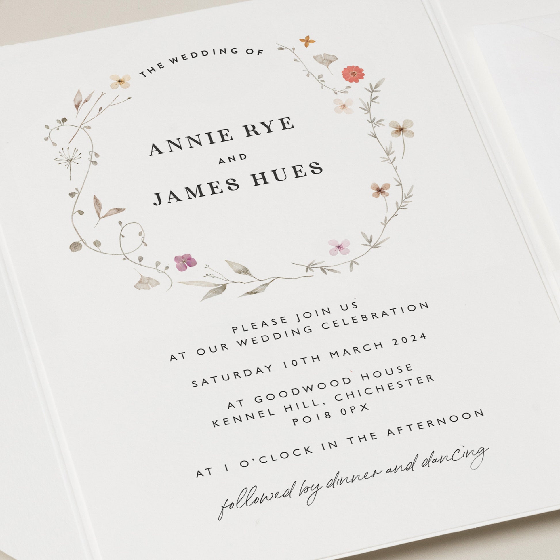 Simple White And Botanical Pocketfold Wedding Invitation 'Annie'