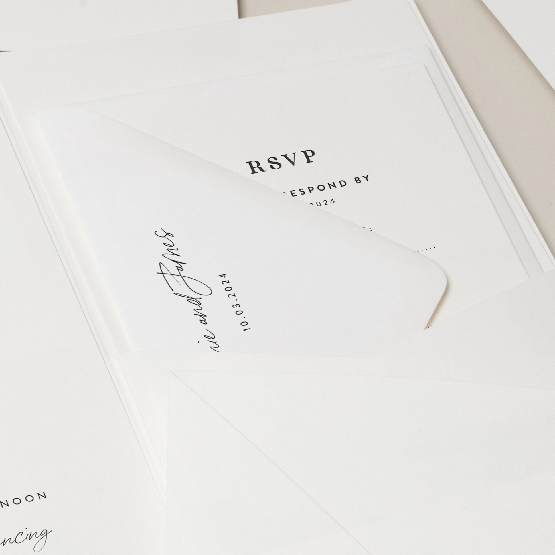 VELLUM JACKETS: Our translucent vellum jackets wrap around your invitations to add interest, texture and intrigue.