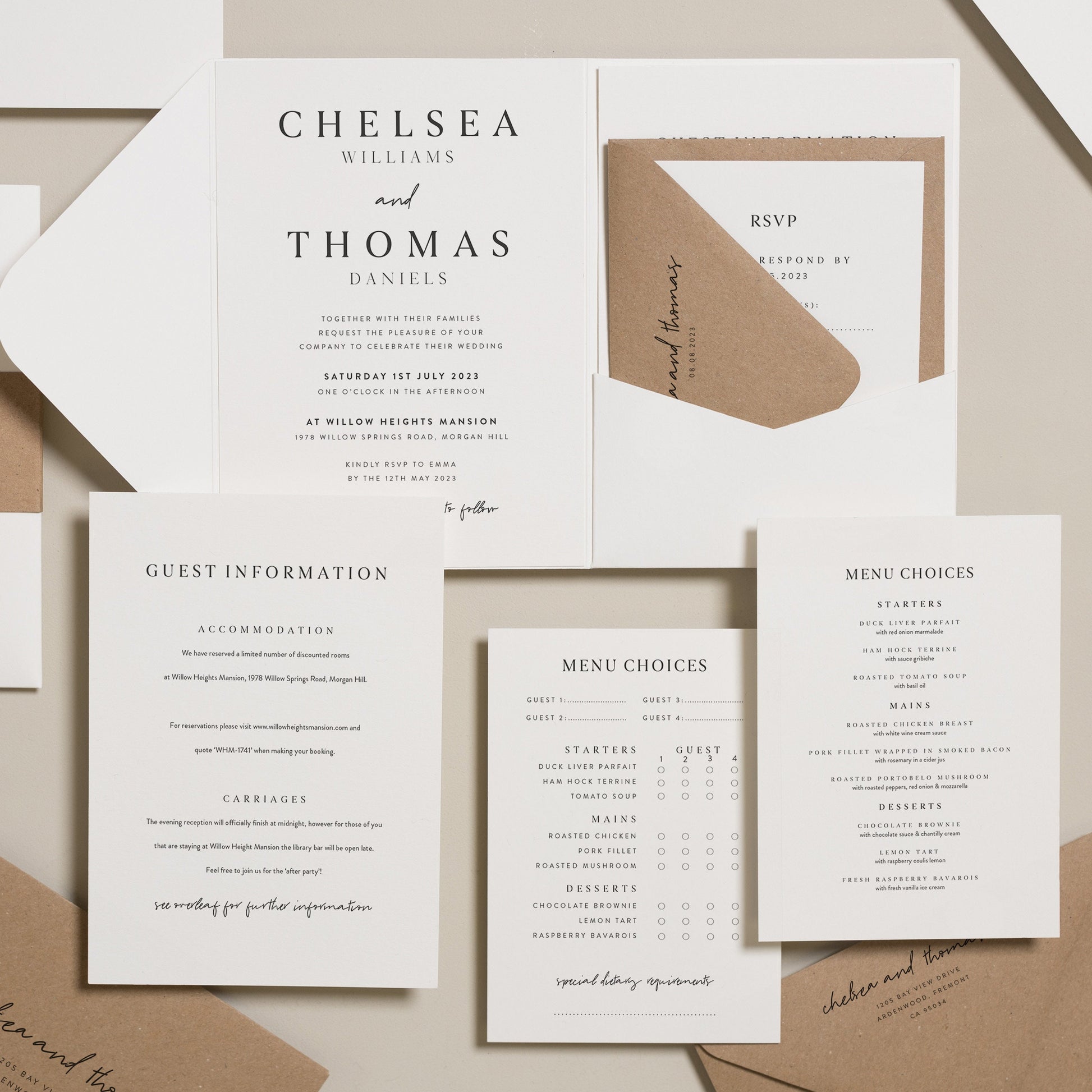 Simple White Wedding Invitation Set 'Chelsea'