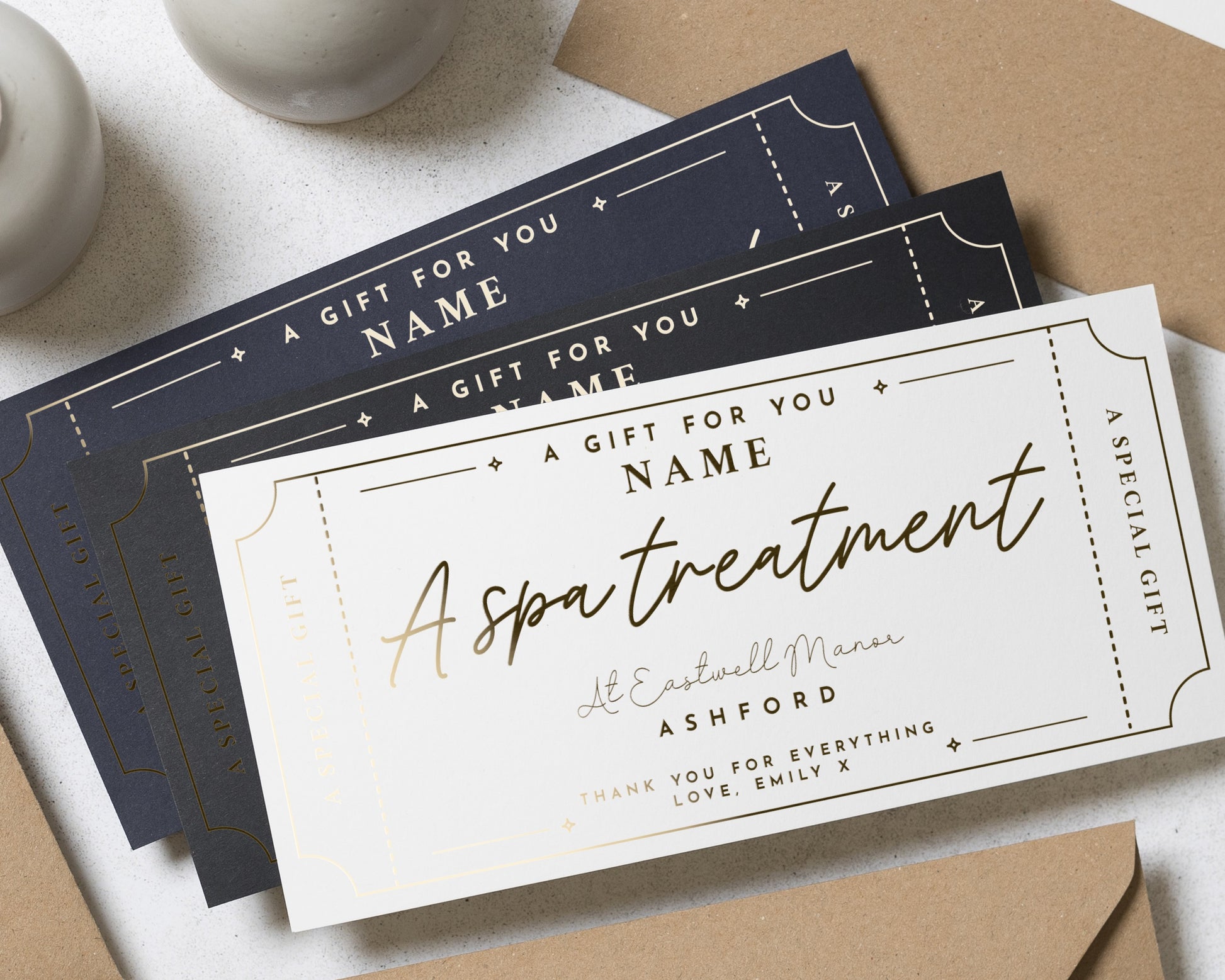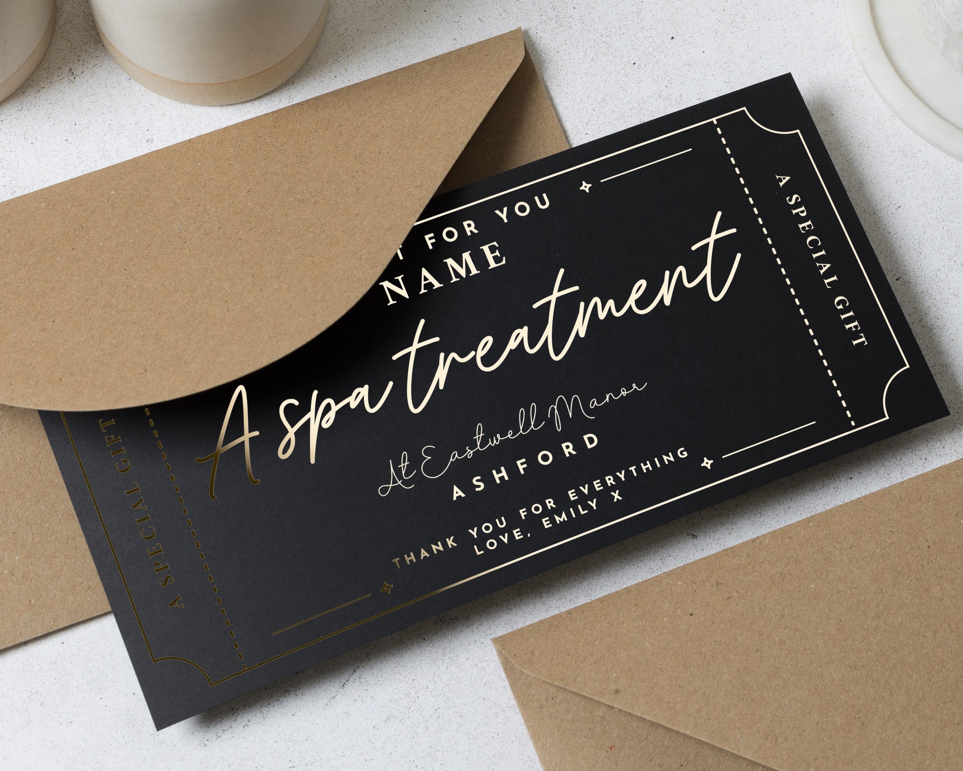 • Every voucher comes complete with a recycled Kraft envelope, ready to gift.