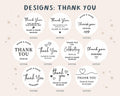 Add a touch of elegance to your wedding or event with this personalised gold foil thank you sticker. Perfect for favours, envelopes, or gifts.