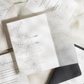 VELLUM JACKETS: Our translucent vellum jackets wrap around your invitations to add interest, texture and intrigue.