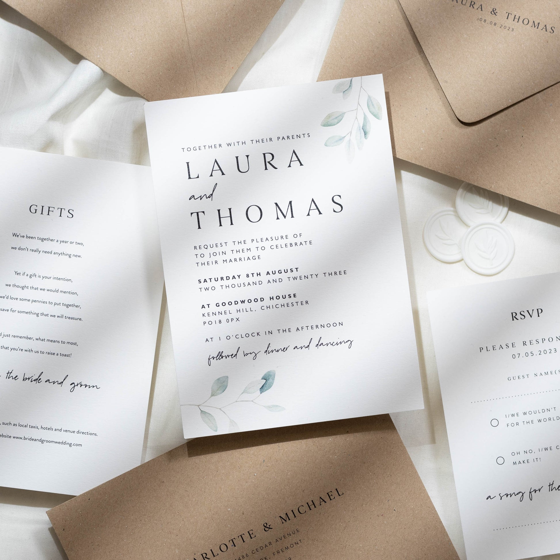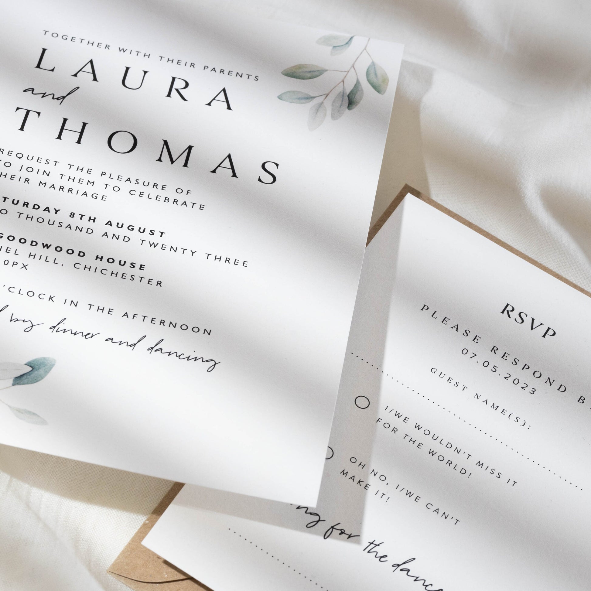 Ready to make a statement? Let's create your dream wedding invite! Our unique quote link for this design is quote.link/laura-postcard, all you need to do is pop it into your URL and it will offer you all the options to add to make it personal.