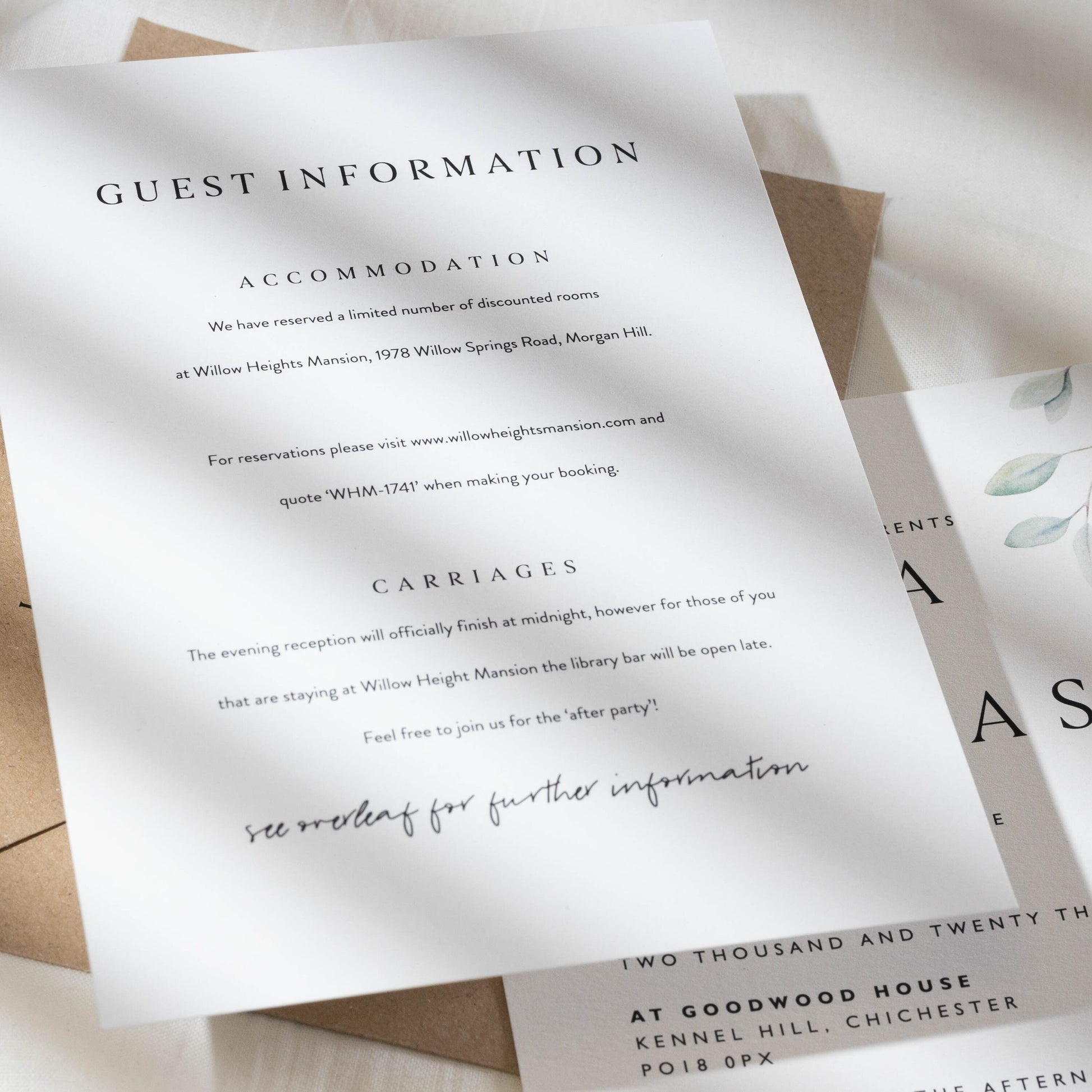 ENVELOPE ADDRESSING: Print your guest addresses on each envelope or include your return address on the reverse.