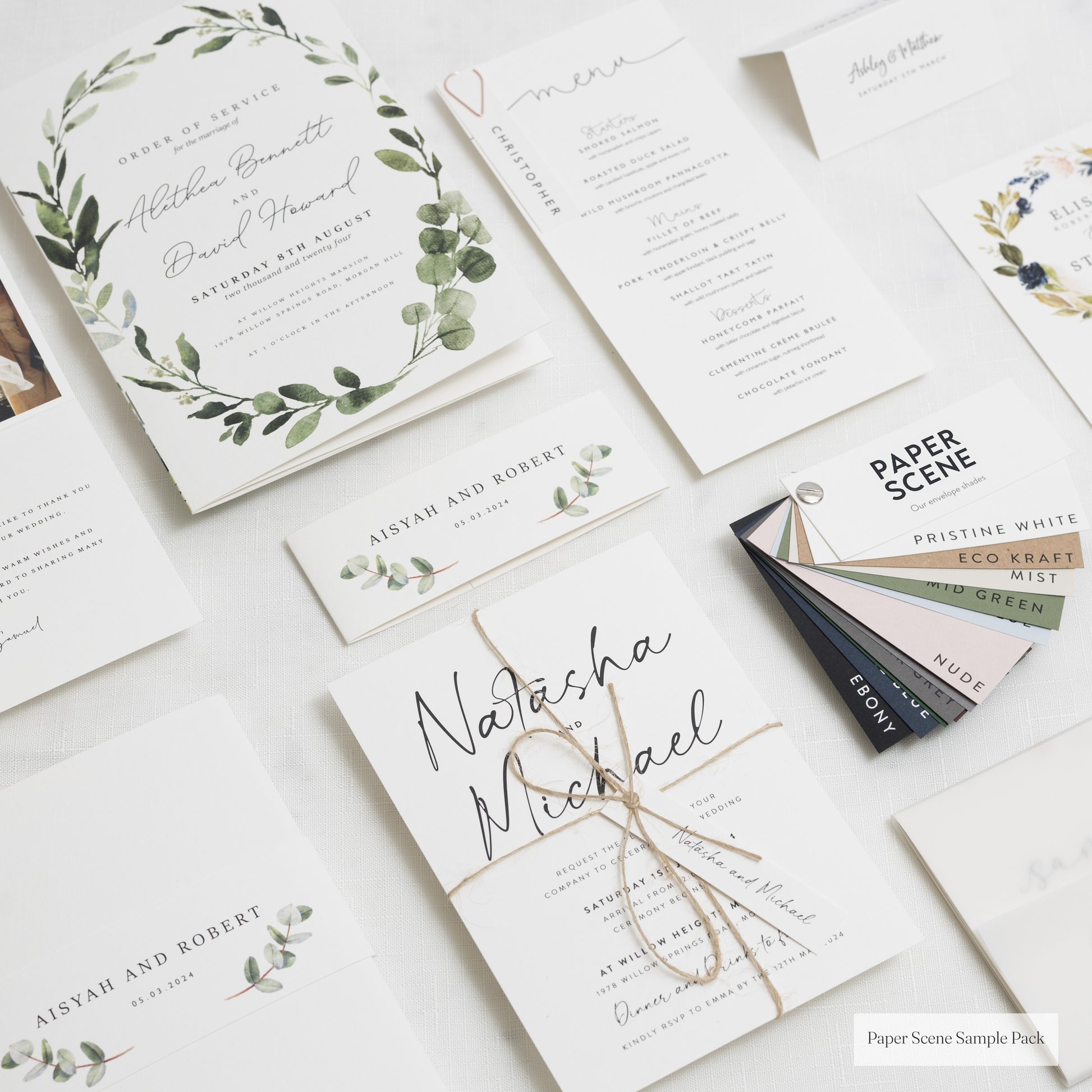 Our well-structured sample pack plays a crucial role in ensuring you are satisfied with your wedding stationery choices, providing tangible samples and informative content to guide your decision-making process.
