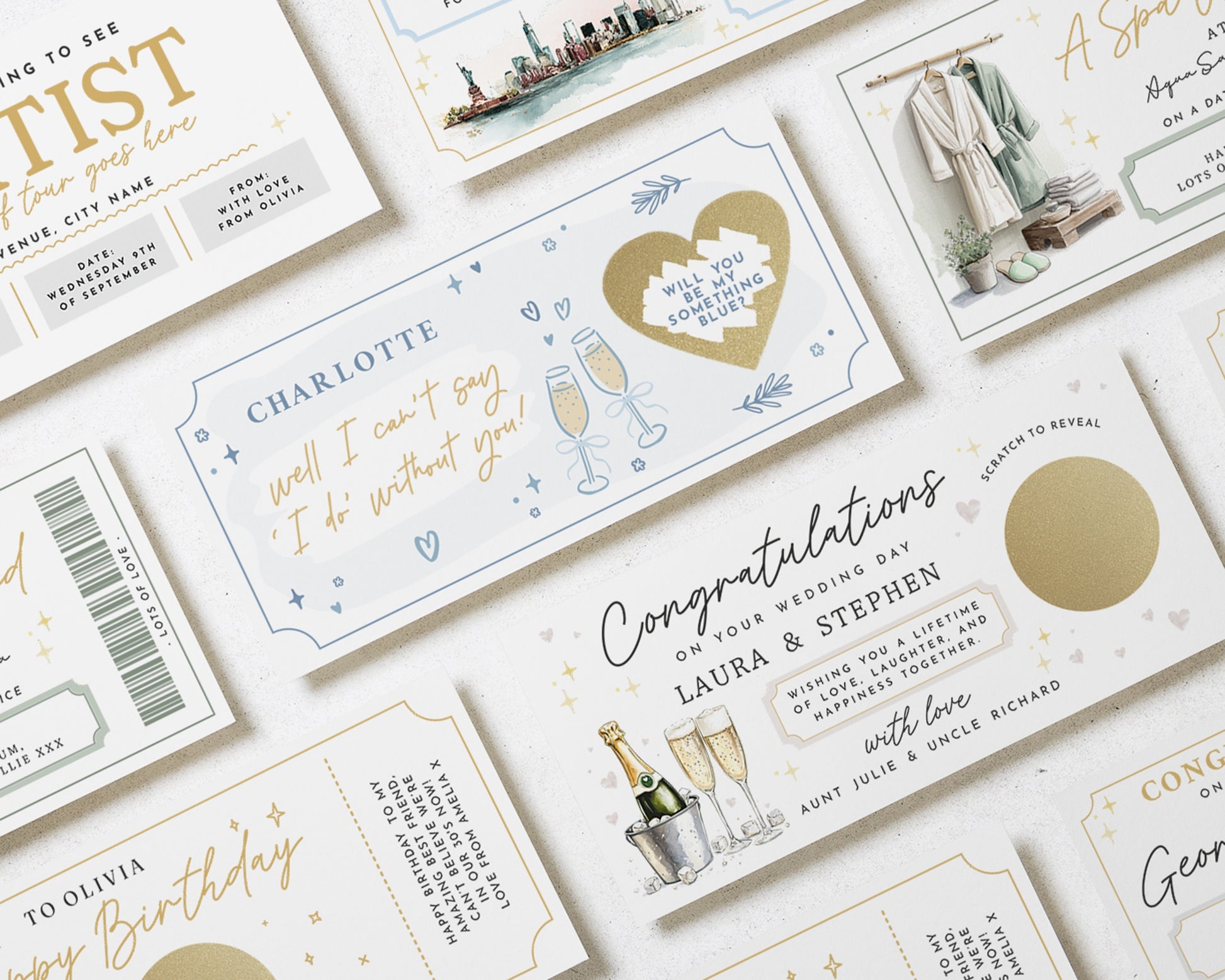 • Each voucher card measures 210x99mm, and is printed on heavyweight premium cardstock.